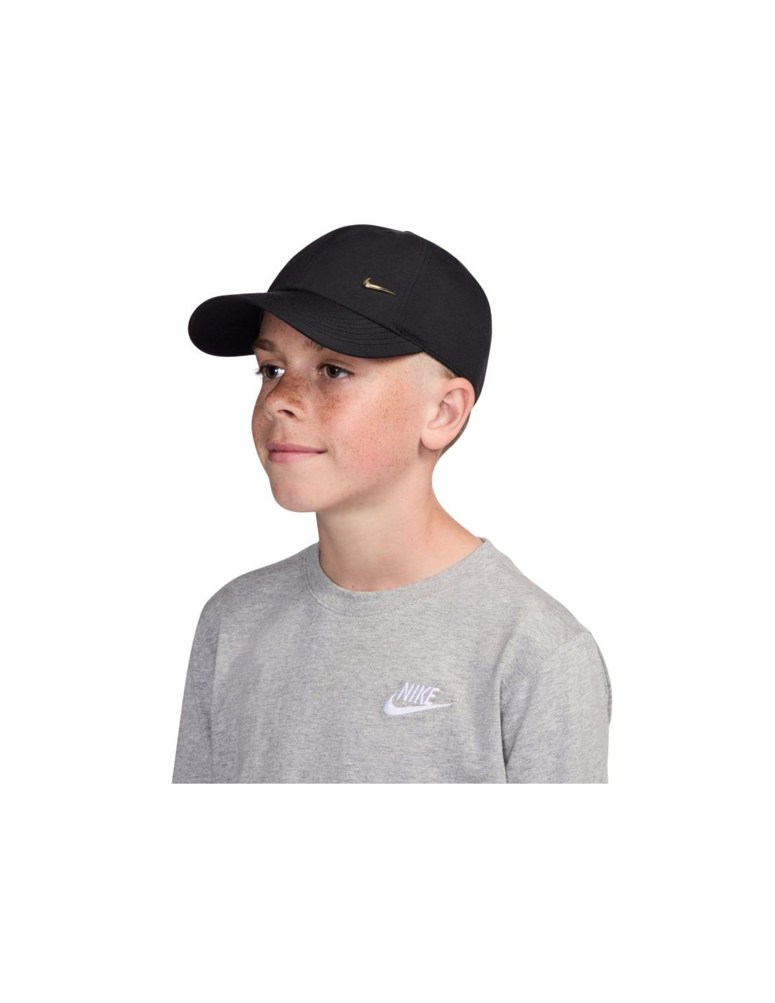 Czapka z daszkiem dla dzieci Nike Dri-Fit Club czarna FB5064 011 Czapka dla dzieci z daszkiem Nike sprawdzi się na co dzień i podczas treningów. Tworzy dodatkową osłonę przed promieniami słonecznymi, wiatrem czy mżawką. Gładki materiał o właściwościach szybkoschnących wsparto technologią Dri-FIT, która odprowadza nadmiar wilgoci ze skóry i umożliwia jej szybkie odparowanie. Średniej głębokości krój to połączenie sześciu paneli posiadających obszyte otwory. Metalowa klamra z logo Swoosh umożliwia łatwą regulację dopasowania. Dane techniczne: · Materiał: 100% poliester z recyklingu· Obwód głowy: 53-56 cm