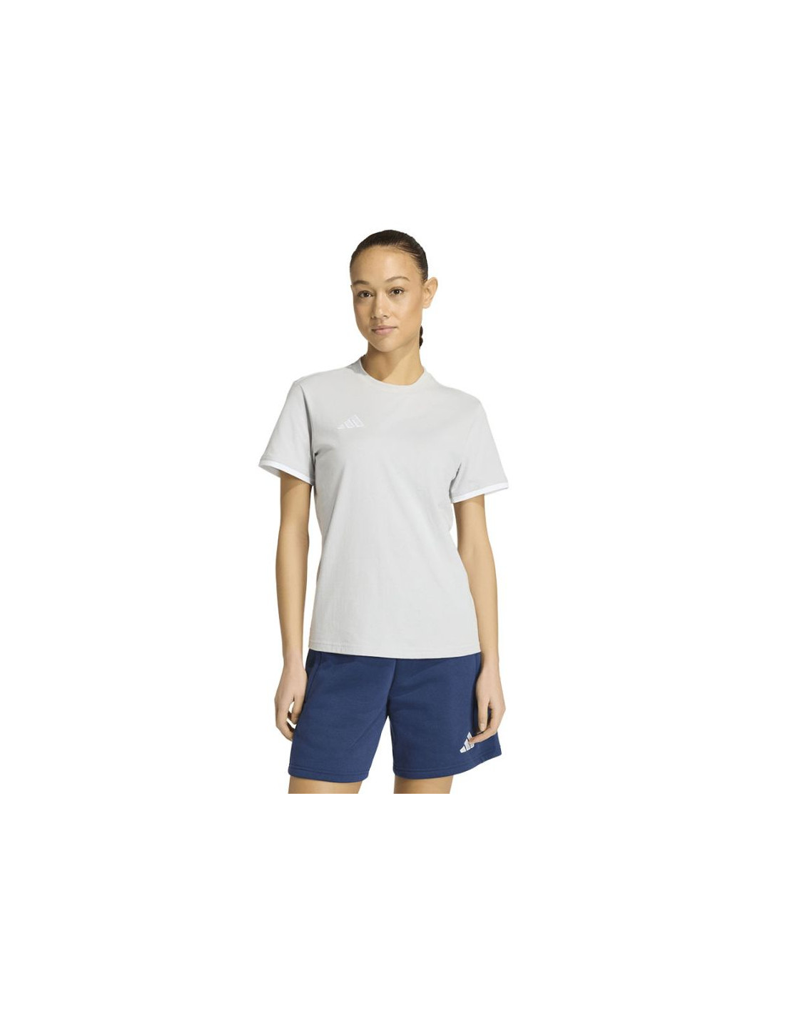 Koszulka damska adidas Entrada 26 Tee szara JZ6680 Koszulka damska adidas sprawdzi się podczas odpoczynku poza linią pola. Bawełniany materiał odpowiada za naturalną wentylację i minimalizuje ryzyko powstawania podrażnień. Standardowy krój. Okrągły dekolt. Wyszywane logo adidas. Linia Entrada. Materiał: 100% bawełna
