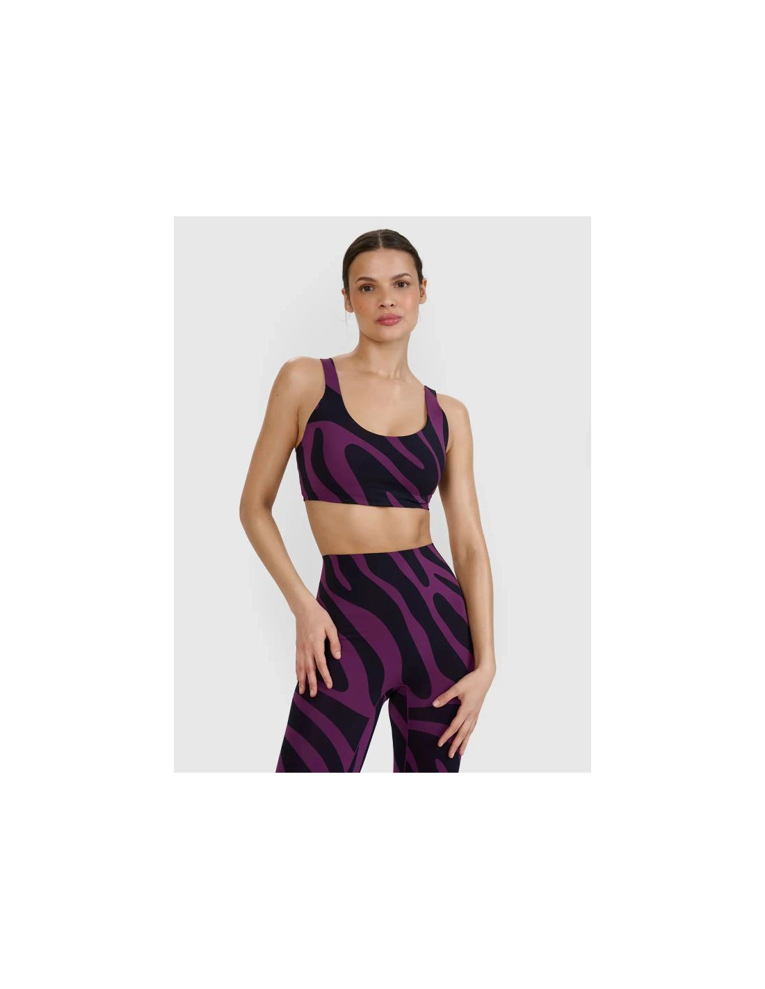 Biustonosz do jogi dla kobiety to idealny wybór dla osób poszukujących wygody, stabilizacji i pełnej swobody ruchów podczas treningu. Dzięki elastycznej konstrukcji, szybkoschnącym włóknom oraz dopasowanemu krojowi slim fit, zapewnia komfort zarówno podczas intensywniejszych sesji, jak i spokojniejszych ćwiczeń. Średnie wsparcie, miękka dzianina interlock oraz formowane miseczki gwarantują odpowiednią stabilizację, a stylowy nadruk i bezszwowe wykończenia podnoszą komfort użytkowania. Zobacz także inne modele w kategorii biustonosze damskie.