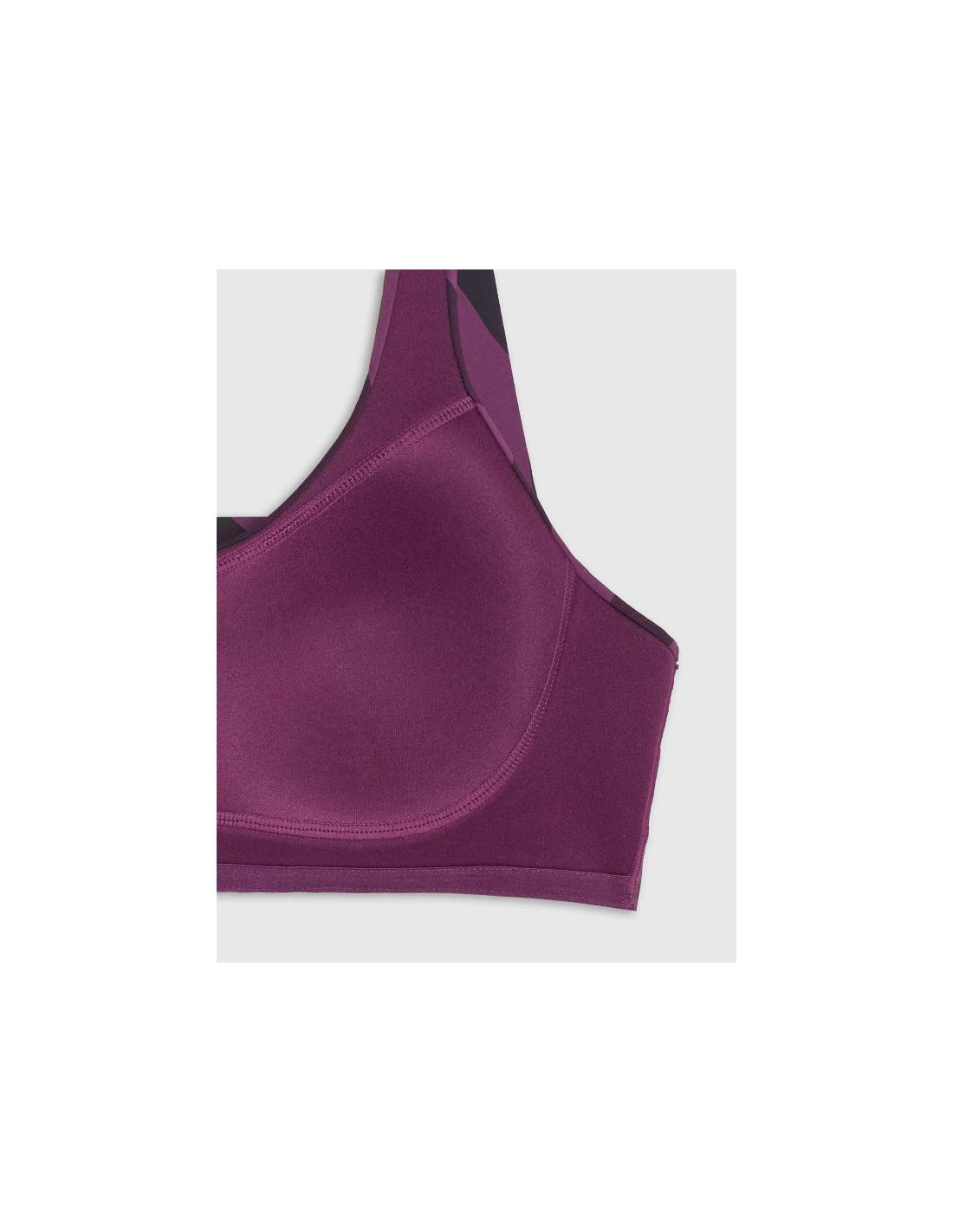 - Guma pod biustem bez regulacji – dopasowuje się do ciała i zapewnia stabilne trzymanie podczas ruchu.