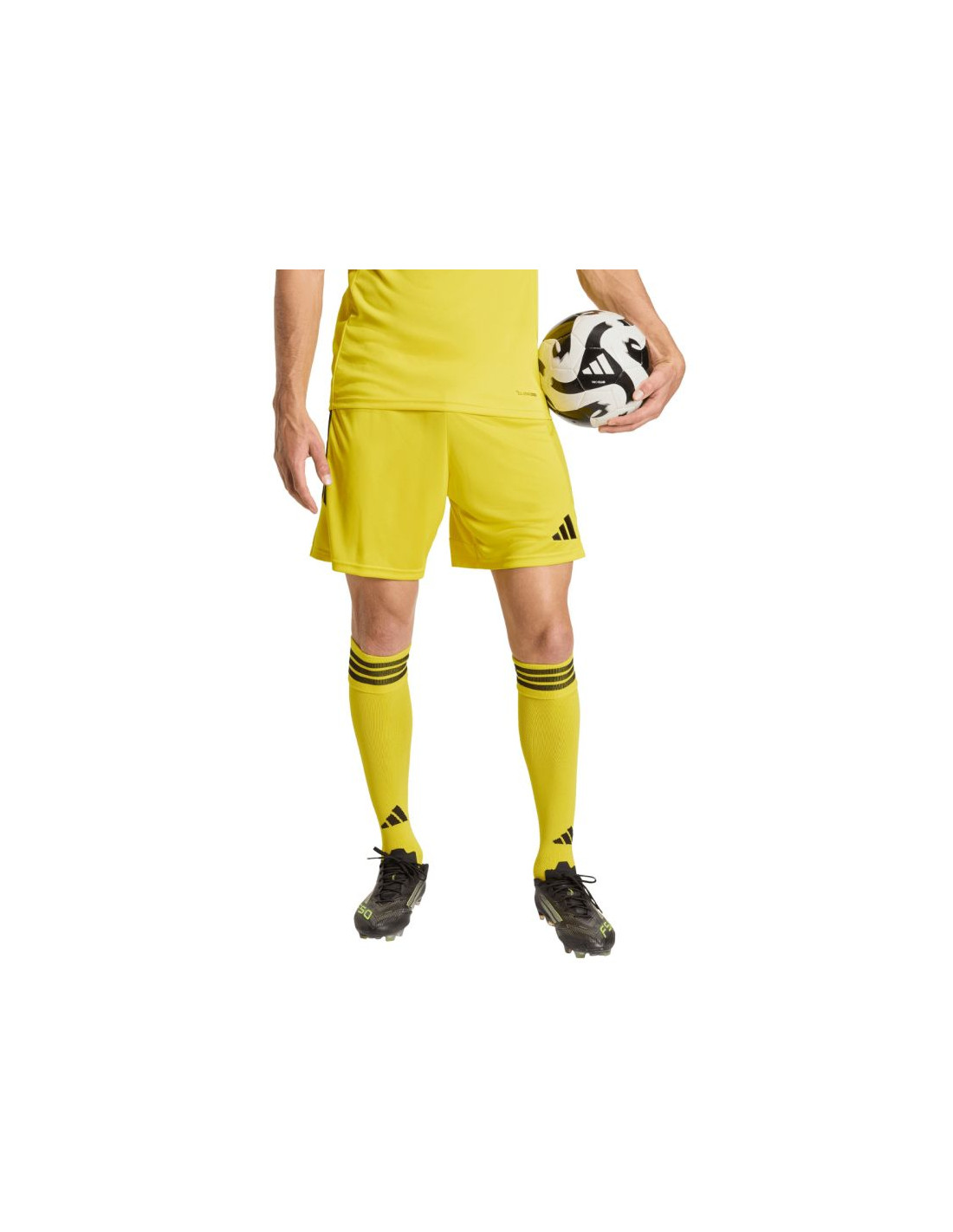 Spodenki męskie adidas Tiro 26 League żółte KA8777 Męskie spodenki adidas sprawdzą się podczas rozgrywek. Model pochodzi z linii Tiro. Standardowy krój. Elastyczna talia regulowana wewnętrznym sznurkiem. Technologia Climacool. Paski po bokach. Niewielkie, wyszywane logo. Materiał: 100% poliester pochodzący z recyklingu