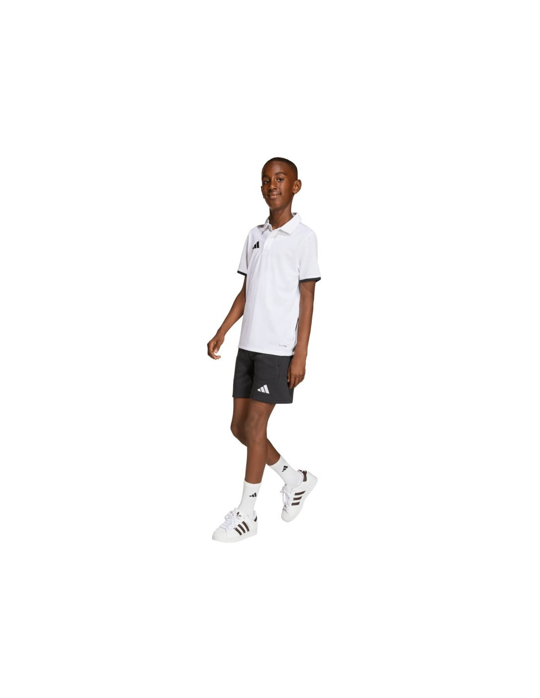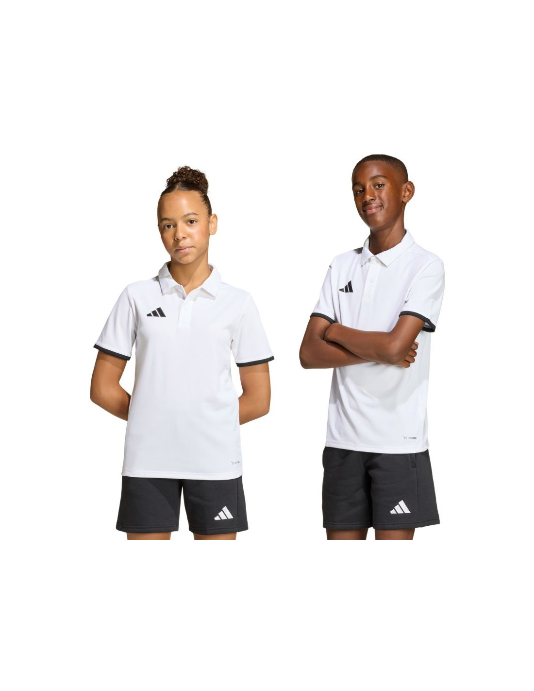 Koszulka dla dzieci adidas Entrada 26 Polo biała JZ6624 Juniorska koszulka polo adidas Entrada łączy w sobie sportowy styl i elegancję. Model wyposażono w technologię Climacool skutecznie odprowadza i rozprasza pot. Kołnierz zapinany na guziki nadaje całości elegancji. Niewielkie logo. Regularny krój. Materiał: 100% poliester pochodzący z recyklingu