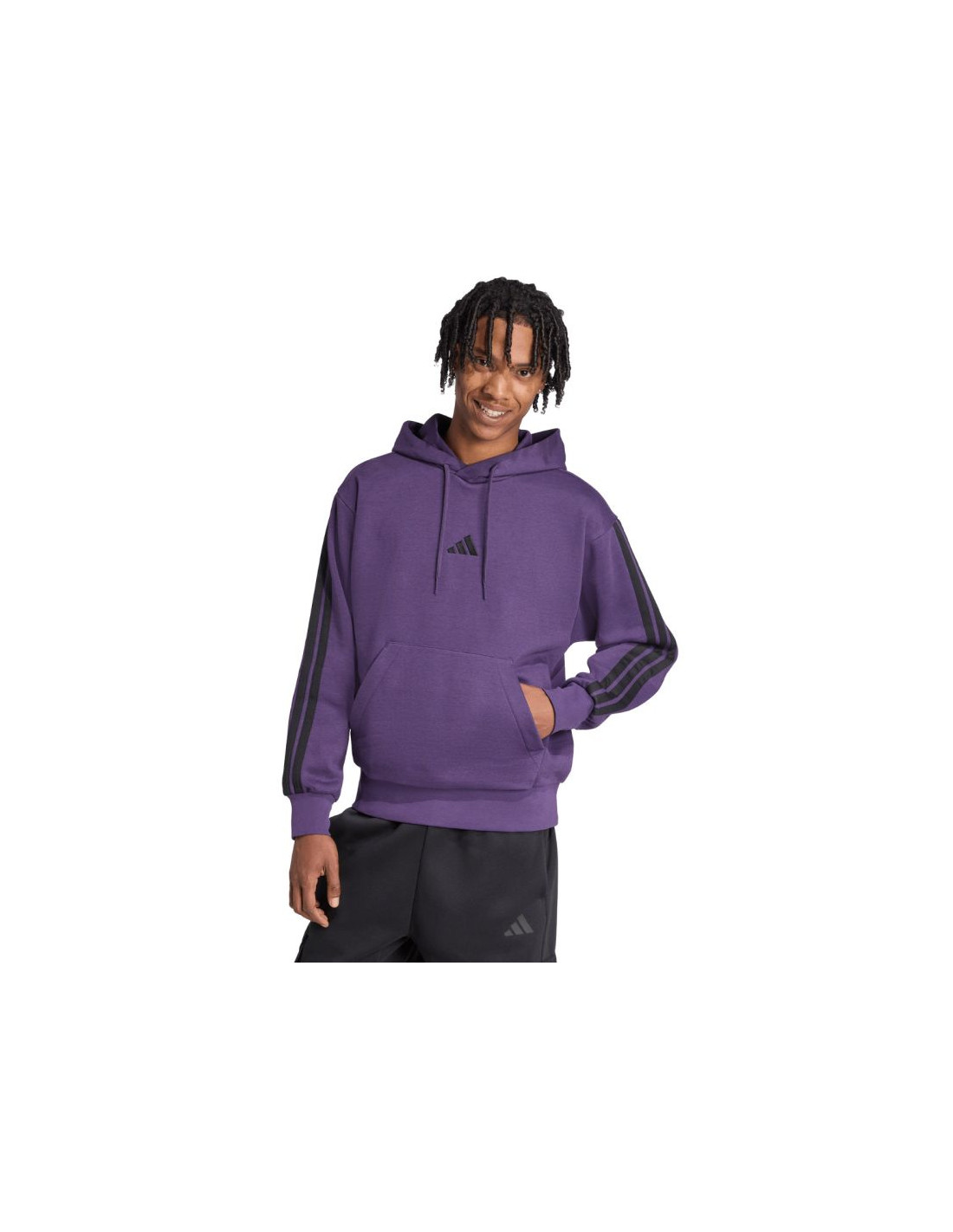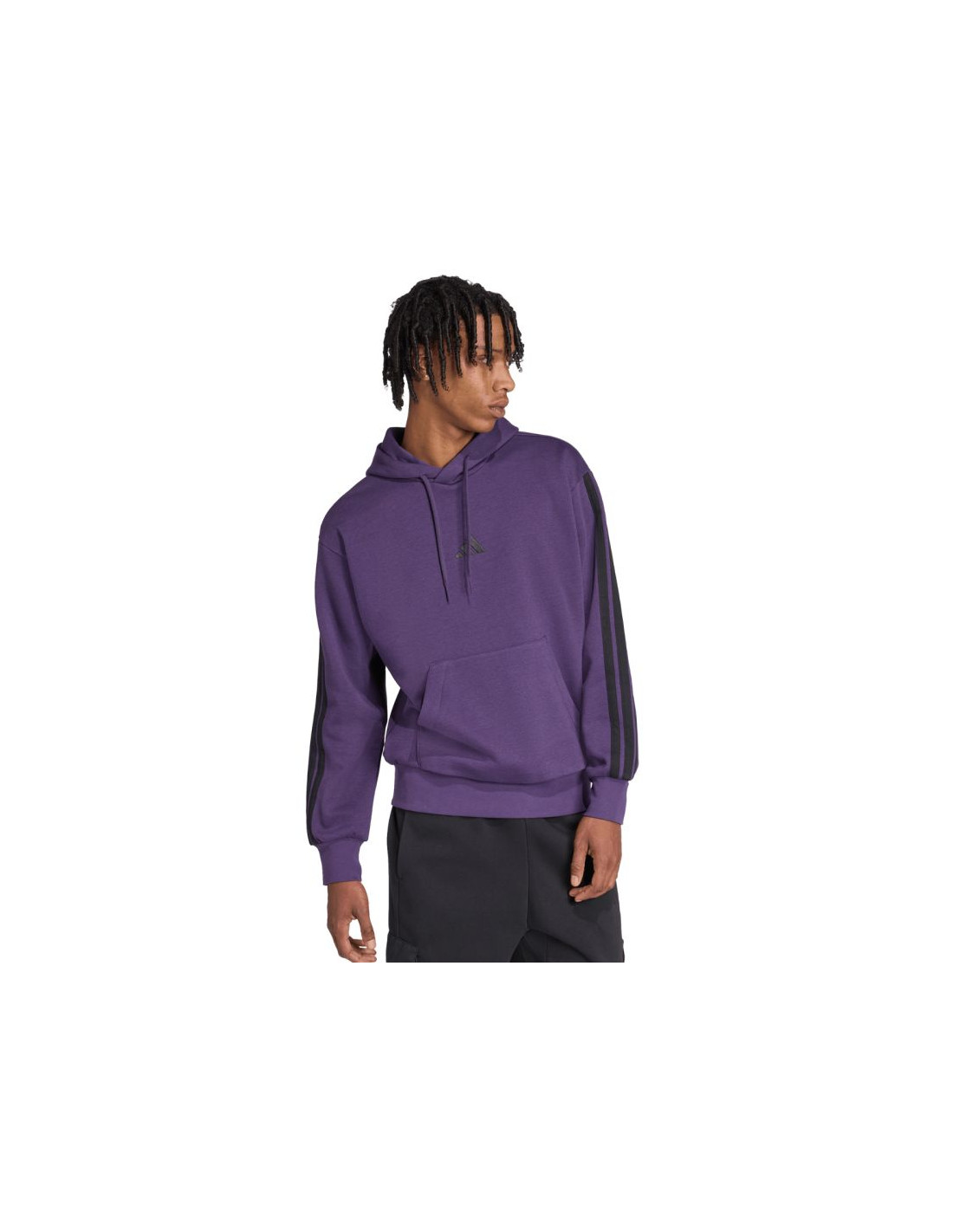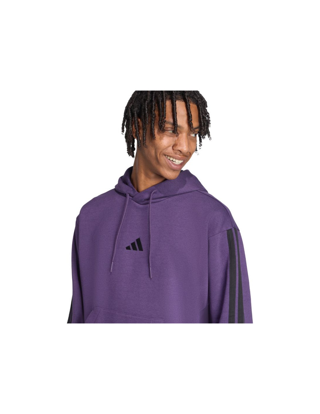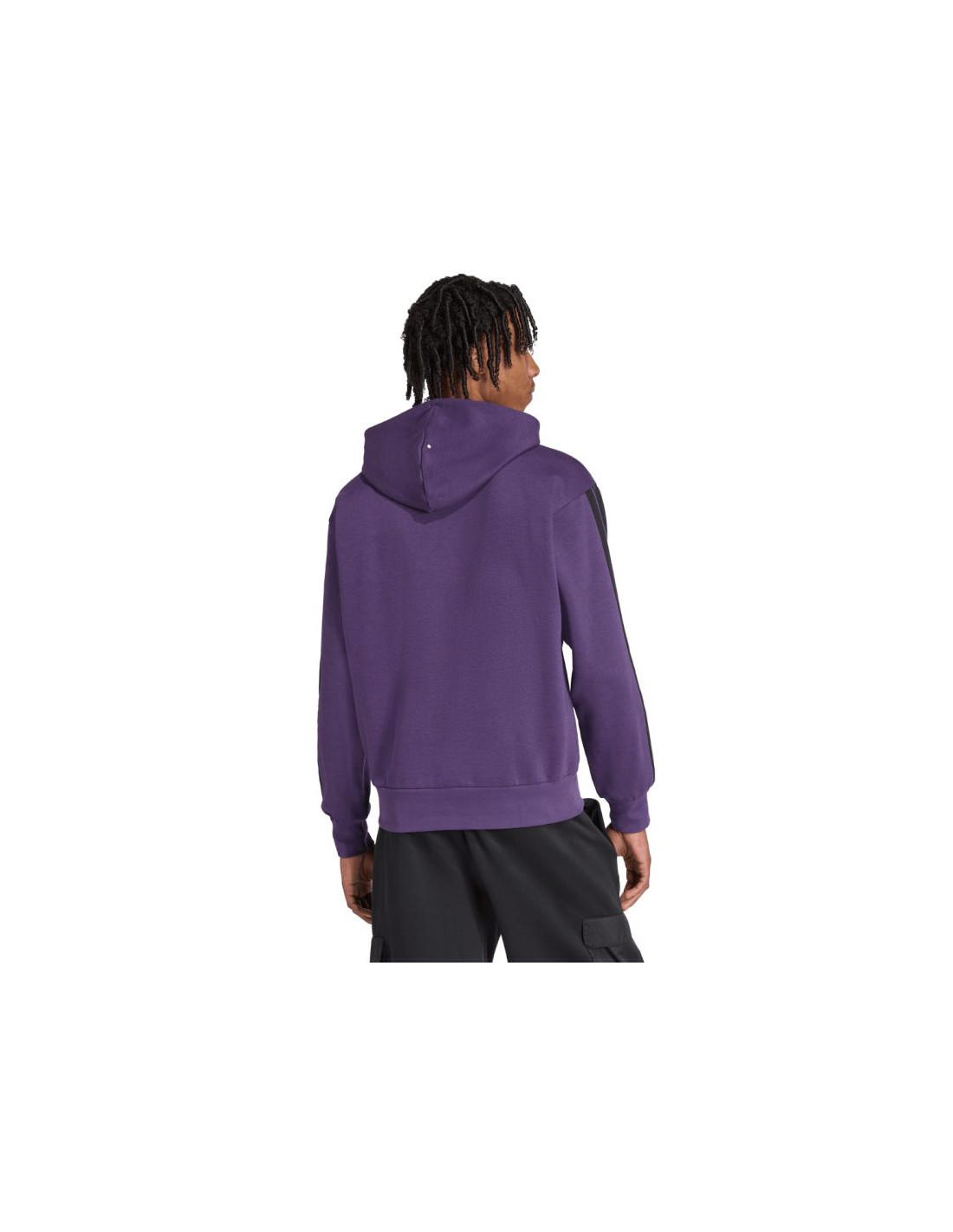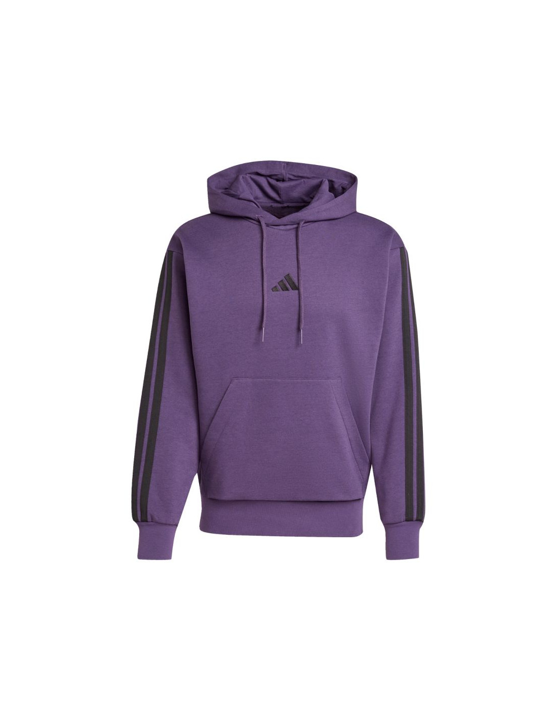 Bluza męska adidas Essentials 3-Stripes Fleece fioletowa JX0740 Męska bluza adidas prezentuje nowoczesny styl w sportowym wydaniu, który sprawdzi się na co dzień. Miękka konstrukcja z bawełnianej tkaniny i dodatku poliestrowych włókien. Wewnętrzne ocieplenie. Standardowy krój z lekko skróconym tyłem i obniżoną linią ramion nie pozbawia mobilności. Ściągacze u dołu i przy mankietach zapobiegają utracie ciepła. Kaptur z regulacją. Frontowa kieszeń.  Materiał: 55% bawełna, 36% poliester z recyklingu, 9% wiskoza