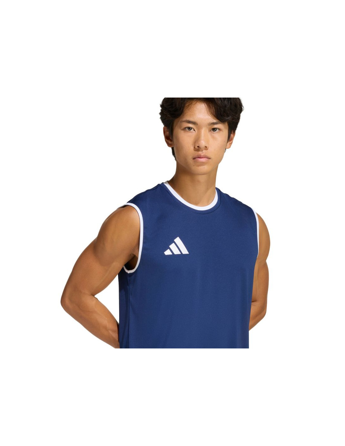 Koszulka męska adidas Entrada 26 Sleeveless Jersey granatowa KB3930 Męska koszulka adidas pozwoli Ci skoncentrować się wyłącznie na meczu. Wyszywane logo adidas na piersi. Dopasowany krój. Technologia Climacool. Okrągły dekolt. Bez rękawów. Materiał: 100% poliester