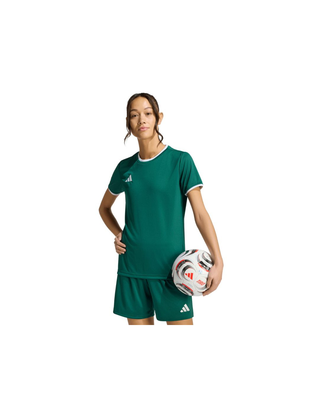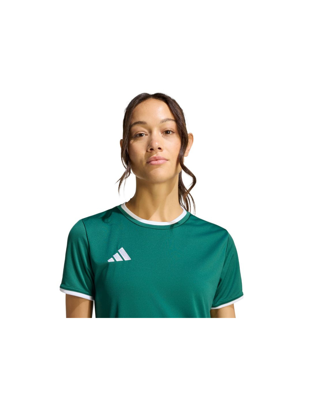 Koszulka damska adidas Entrada 26 Jersey zielona KE9833 Koszulka damska adidas sprawdzi się podczas treningów i decydujących rozgrywek meczowych. Model z linii Entrada. Okrągły dekolt. Wyszywane logo. Koszulkę uszyto z szybkoschnących, poliestrowych włókien wspartych technologią Climacool, która skutecznie odprowadza i rozprasza pot. Dopasowany krój. Poliestrowa tkanina wykorzystana w produkcji tego modelu, powstała w procesie recyklingu, co przyczynia się do ochrony naturalnych zasobów środowiska. Materiał: 100% poliester z recyklingu