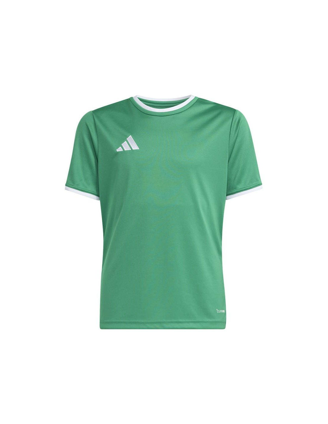 Koszulka dla dzieci adidas Entrada 26 Jersey zielona JZ2528 Koszulka dla dzieci adidas powinna znaleźć się w sportowej garderobie każdego młodego piłkarza, który chce w pełnym skupieniu doskonalić swoje umiejętności. Lekka konstrukcja z poliestru zyskała wsparcie w technologii Climacool, która pomaga odprowadzać pot z powierzchni skóry, oferując uczucie świeżości, suchości i ochłody. Klasyczny krój nie krepuje ruchów. Estetyczne wykończenie w postaci okrągłego dekoltu i wyszywanego logo. Materiał: 100% poliester pochodzący z recyklingu