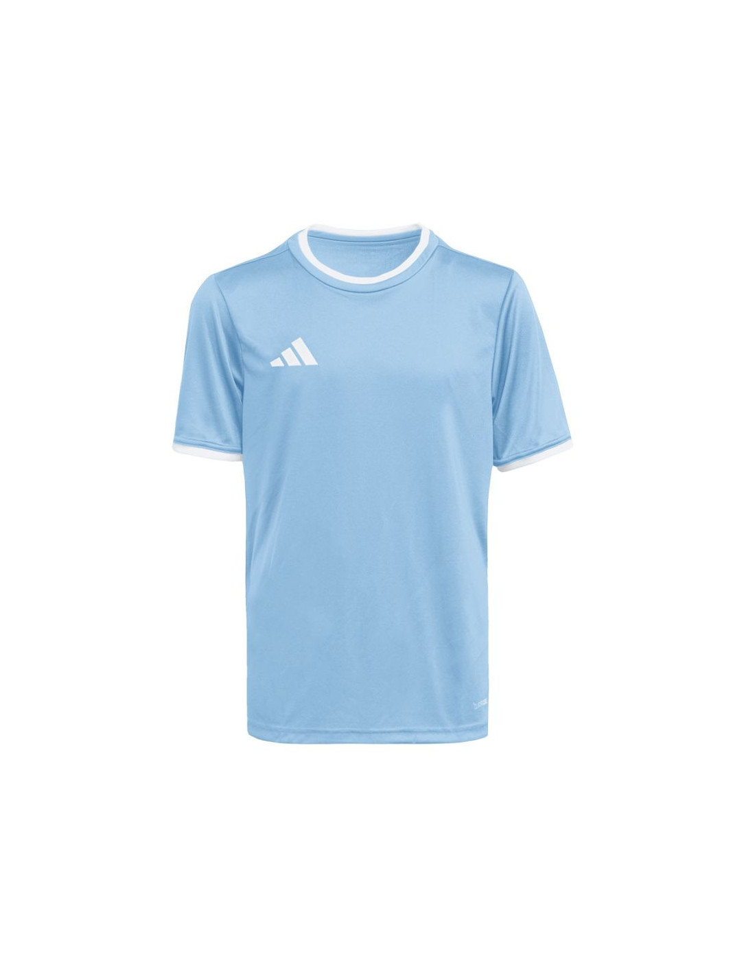 Koszulka dla dzieci adidas Entrada 26 Jersey błękitna JZ2527 Koszulka dla dzieci adidas powinna znaleźć się w sportowej garderobie każdego młodego piłkarza, który chce w pełnym skupieniu doskonalić swoje umiejętności. Lekka konstrukcja z poliestru zyskała wsparcie w technologii Climacool, która pomaga odprowadzać pot z powierzchni skóry, oferując uczucie świeżości, suchości i ochłody. Klasyczny krój nie krepuje ruchów. Estetyczne wykończenie w postaci okrągłego dekoltu i wyszywanego logo. Materiał: 100% poliester pochodzący z recyklingu