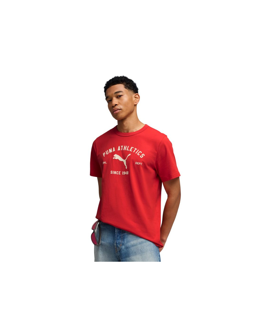 Koszulka męska Puma Class Graphic Tee czerwona 692226 11 Koszulka męska Puma sprawdzi się na co dzień. Napisy na forcie. Duże logo z przodu. Krótkie rękawy. Miękki materiał. Materiał główny: 100% bawełna