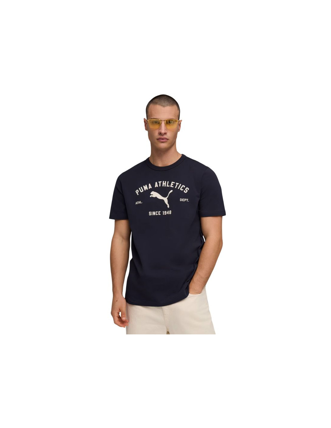 Koszulka męska Puma Class Graphic Tee granatowa 692226 16 Koszulka męska Puma sprawdzi się na co dzień. Napisy na forcie. Duże logo z przodu. Krótkie rękawy. Miękki materiał. Materiał główny: 100% bawełna