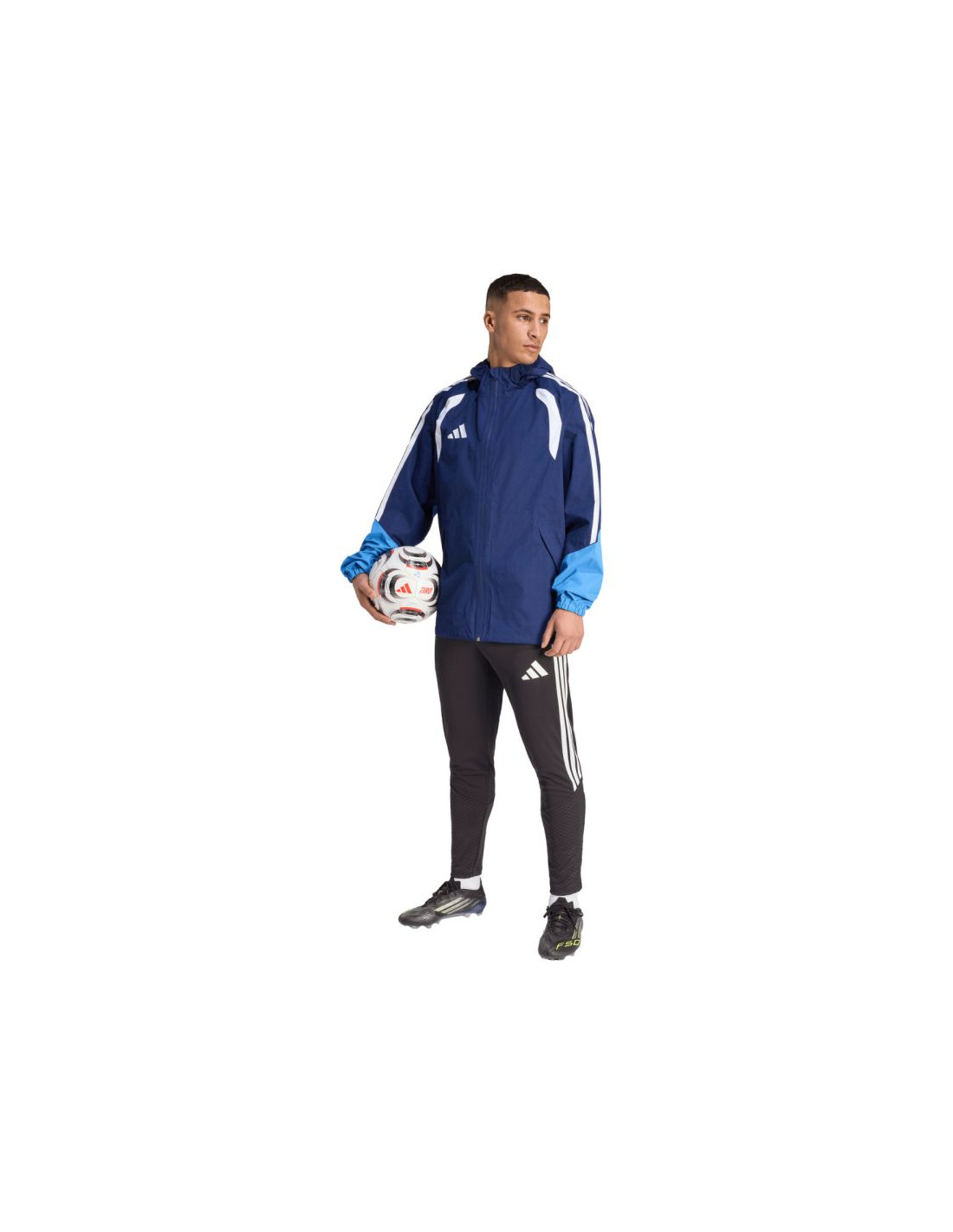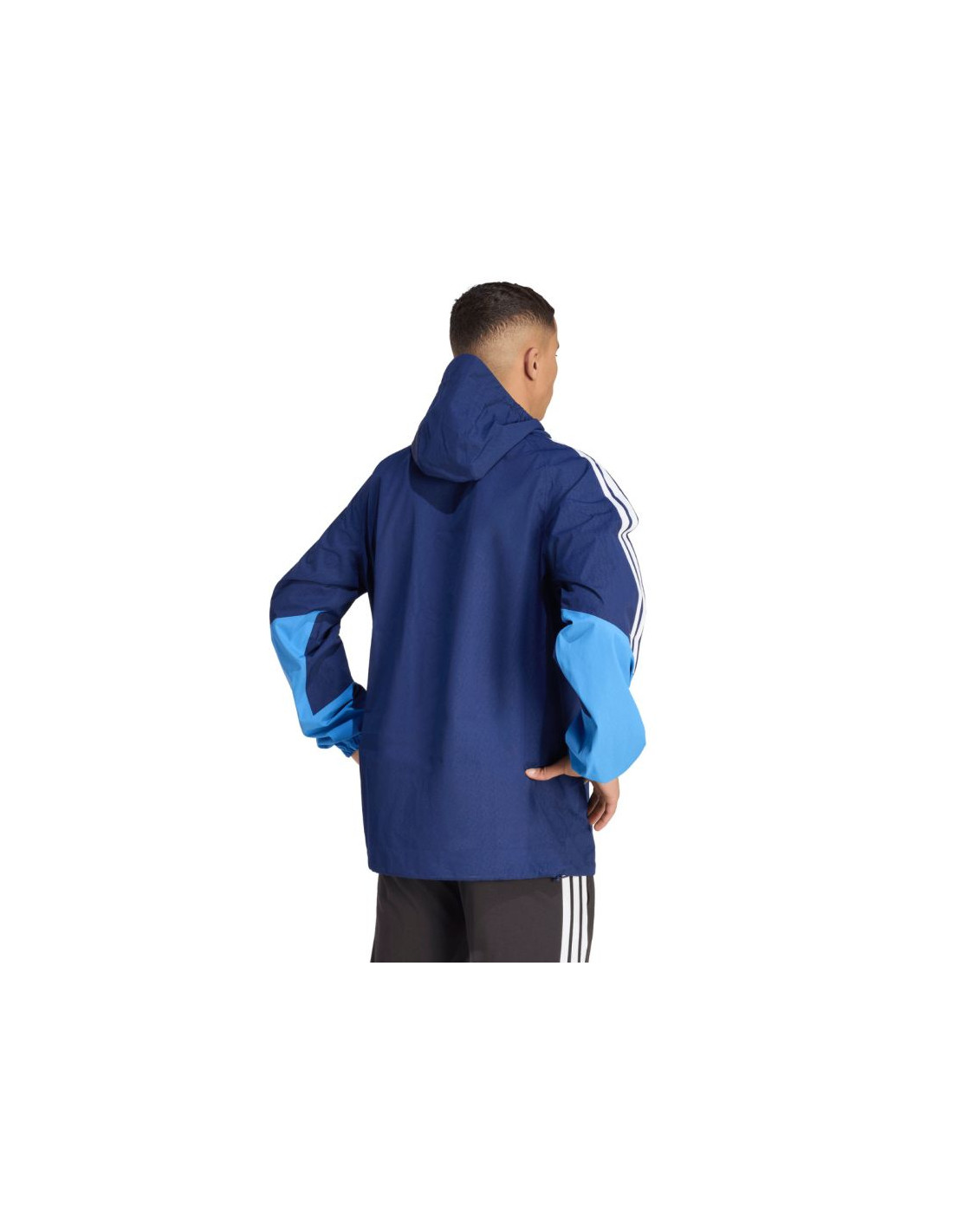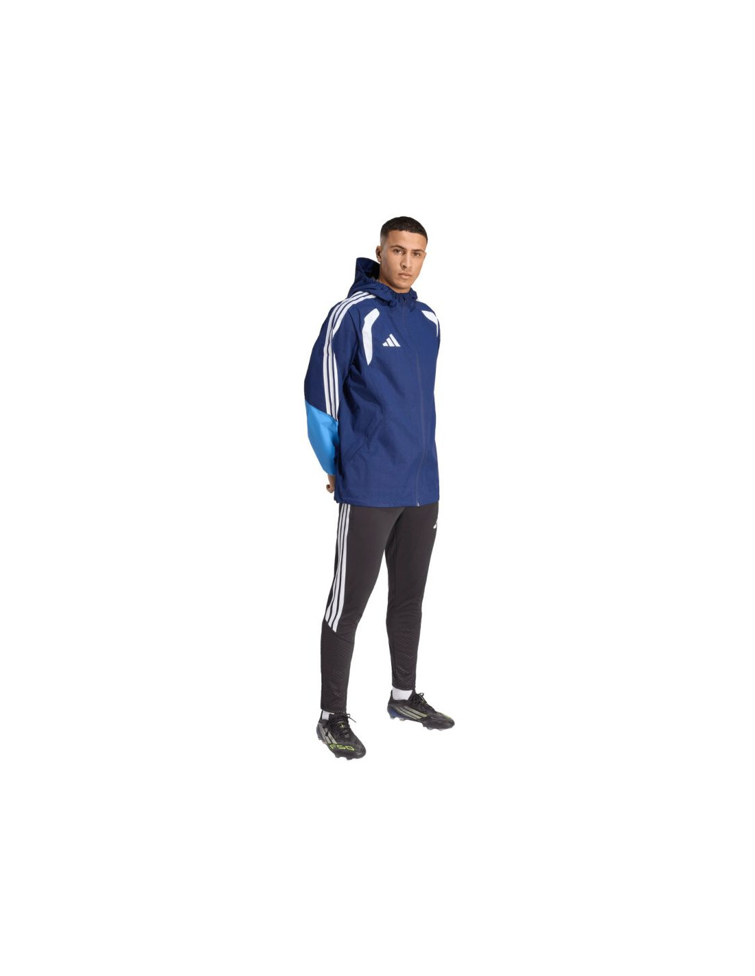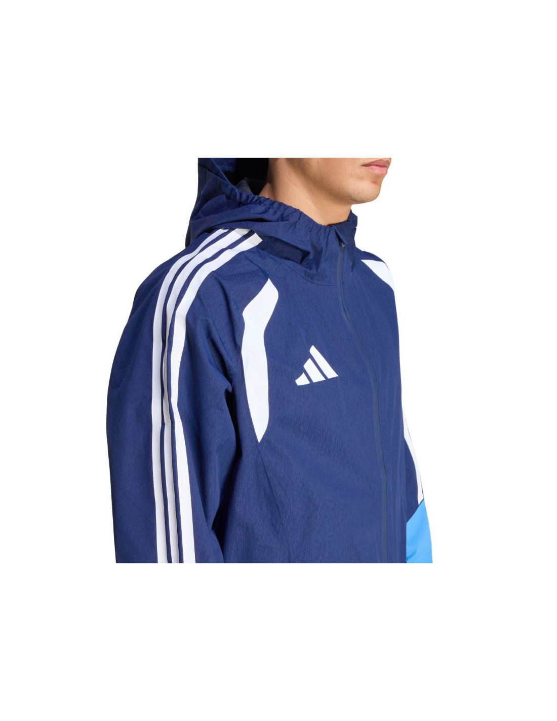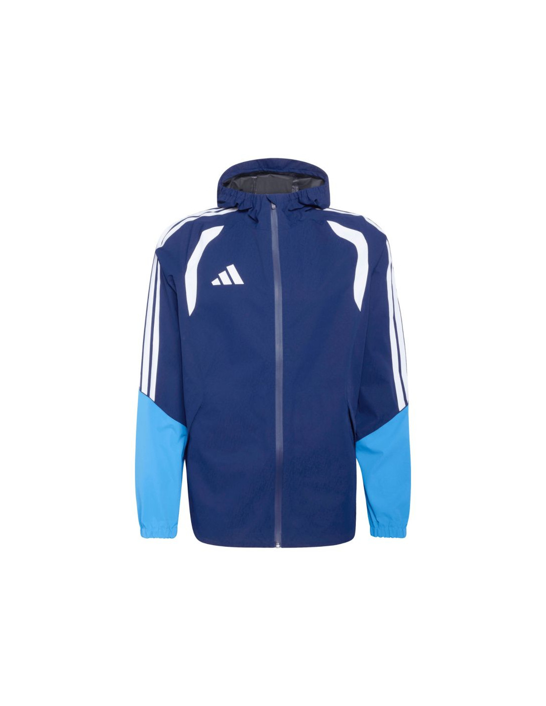 Kurtka męska adidas Tiro 26 Rain Jacket granatowa JY8963 Męska kurtka przeciwdeszczowa adidas z piłkarskiej linii Tiro sprawdzi się podczas treningu i odpoczynku poza linią boiska niezależnie od pogody. Regularny krój. Centralny zamek błyskawiczny. Kaptur z elastycznym wykończeniem. Zapinane kieszenie boczne. Elastyczne mankiety. Dół regulowany ściągaczem ze stoperami. Technologia Clima365 adidas to nowoczesne rozwiązanie oparte na zaawansowanych materiałach. Wodoodporna, wiatroszczelna tkanina oraz w pełni uszczelniona konstrukcja skutecznie chronią przed lekkim deszczem i wiatrem. Oddychające materiały. Dane techniczne:· Warstwa wierzchnia: 100% poliester z recyklingu· Warstwa wewnętrzna: 100% poliuretan· Regularny krój· Zamek błyskawiczny na całej długości· Kaptur· Technologia Clima 365· Uszczelnione szwy