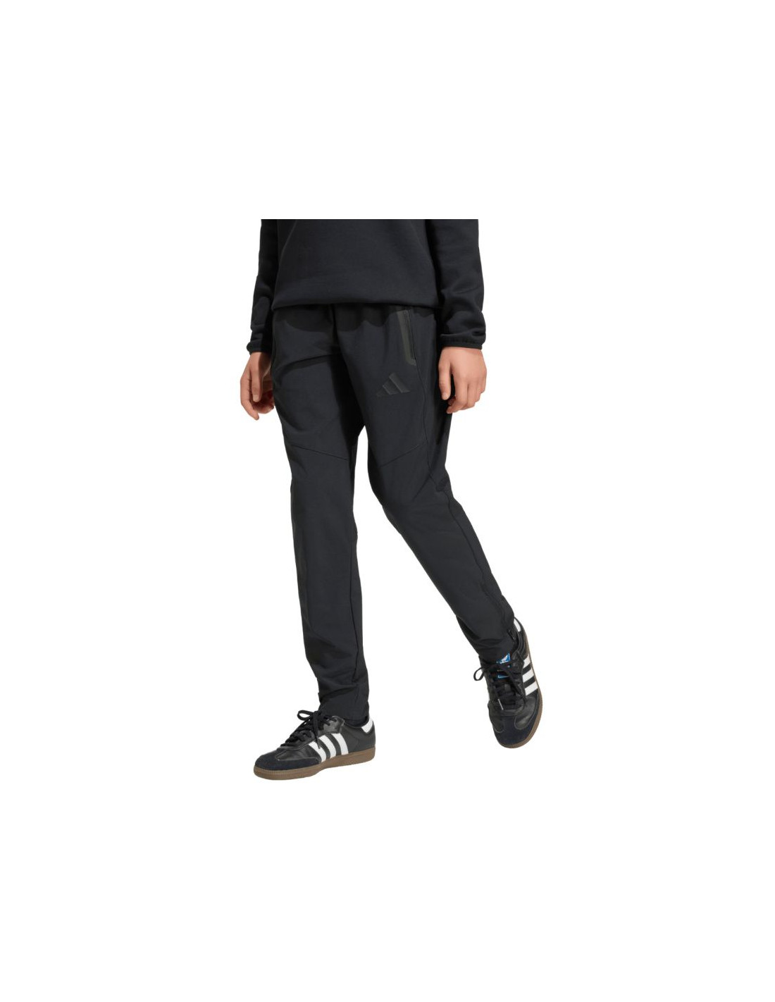 Spodnie dla dzieci adidas Tiro 26 Travel Woven czarne JM5556 Spodnie męskie adidas będące częścią linii Tiro sprawdzą się podczas odpoczynku pomiędzy sesjami treningowymi. Szybkoschnący materiał o płóciennym splocie. Regularny krój. Zwężane ku dołowi nogawki z ergonomicznymi przeszyciami wykończono suwakami. Elastyczna talia. Zapinane kieszenie boczne. Niewielkie logo. Materiał: 87% poliester z recyklingu, 13% elastan