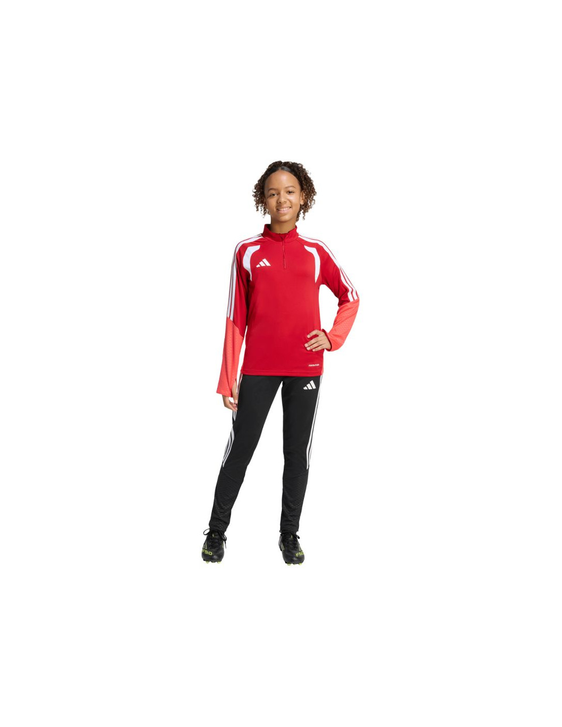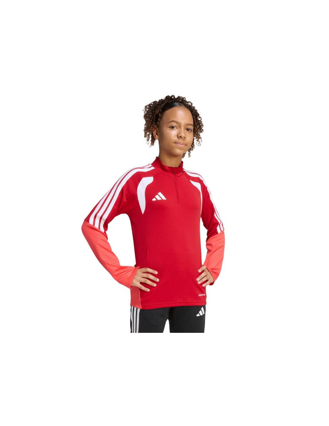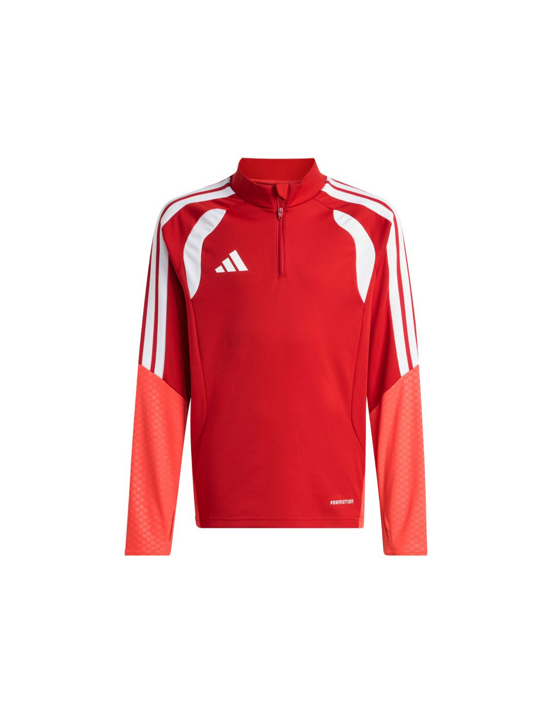 Bluza dla dzieci adidas Tiro 26 Competition Training Top czerwono-pomarańczowa KA7571 Bluza piłkarska adidas przeznaczona dla dzieci sprawdzi się podczas treningów. Stójka. Długi zamek wykończono patką chroniącą podbródek. Dopasowany krój. Technologia Formotion zadba o jeszcze lepszą mobilność. Siateczkowe panele umieszczone na klatce piersiowej. Paski w górnej części rękawów. Mankiety wykończone elastycznymi ściągaczami. Wytłoczone elementy na ramionach i bokach. Materiał: 100% poliester z recyklingu