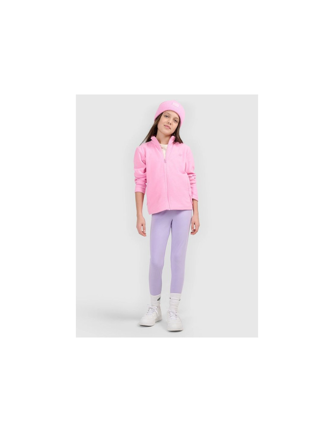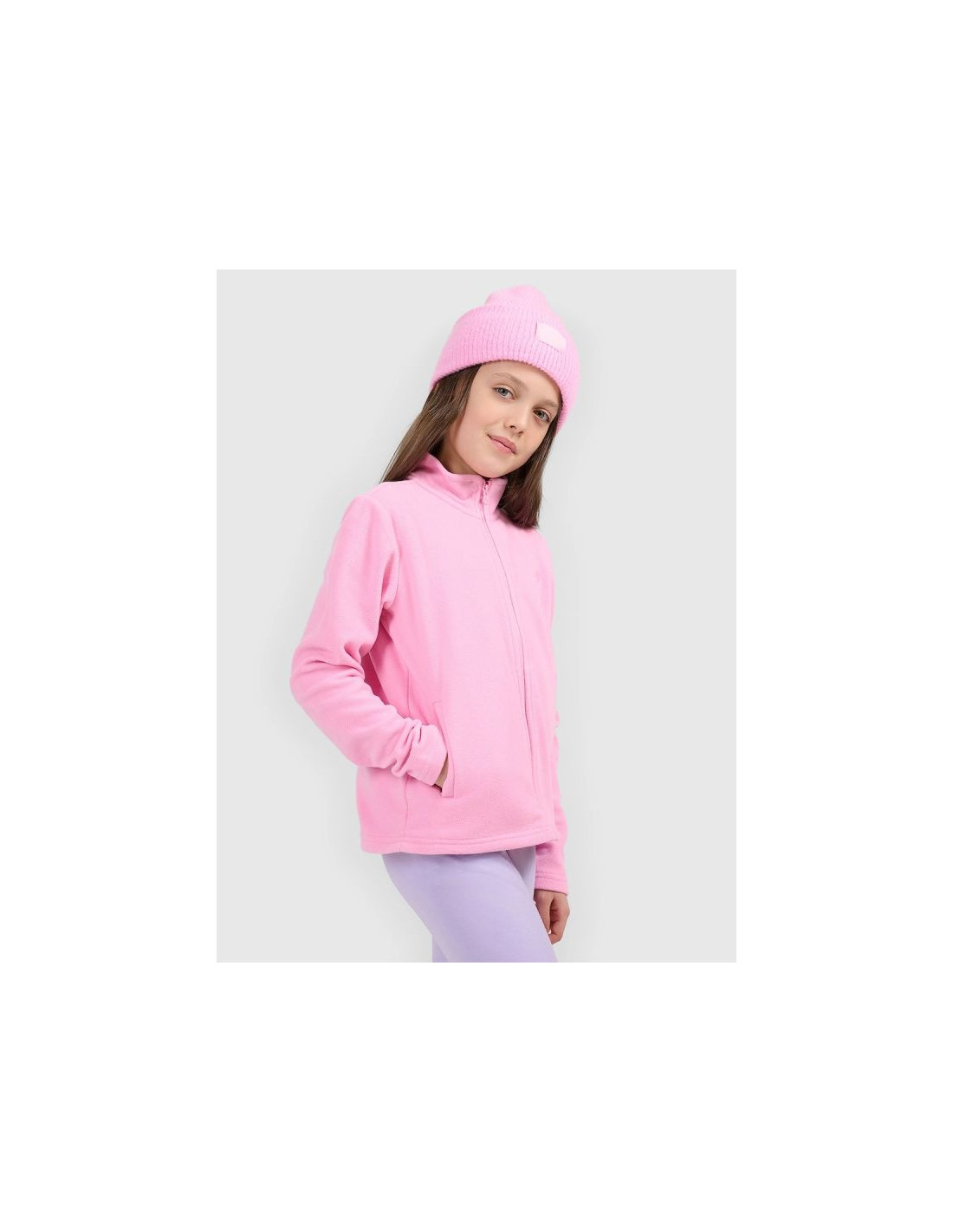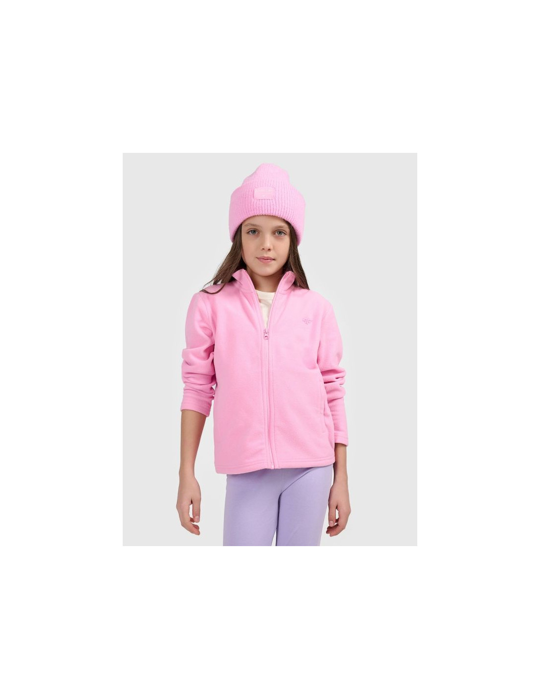 Dziewczęcy polar 4F posiada wygodne zapięcie na zamek, które ułatwia zakładanie i zdejmowanie. Sportowy charakter oraz prosty fason sprawiają, że model dobrze komponuje się z różnymi elementami garderoby i stanowi praktyczne uzupełnienie codziennych stylizacji.