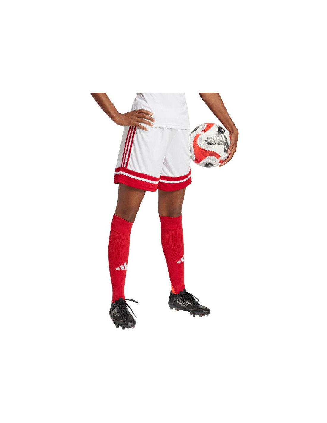 Spodenki damskie adidas Squadra 25 biało-czerwone JJ0020 Damskie spodenki adidas Squadra to propozycja dla wszystkich zawodniczek, które bez zakłóceń chcą prowadzić drużynę ku zwycięstwu. Elastyczna talia regulowana sznurkiem. Technologia Aeroready zadba o suchość do końca meczu lub treningu. Szybkoschnące włókna pochodzące z recyklingu. Materiał: dzianina o gęstym splocie, 100% poliester pochodzący z recyklingu