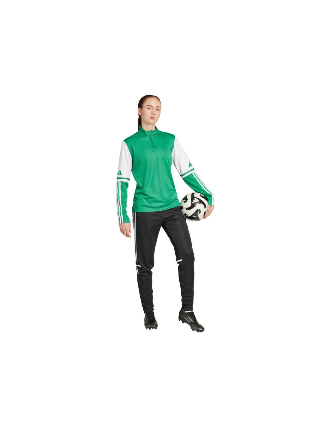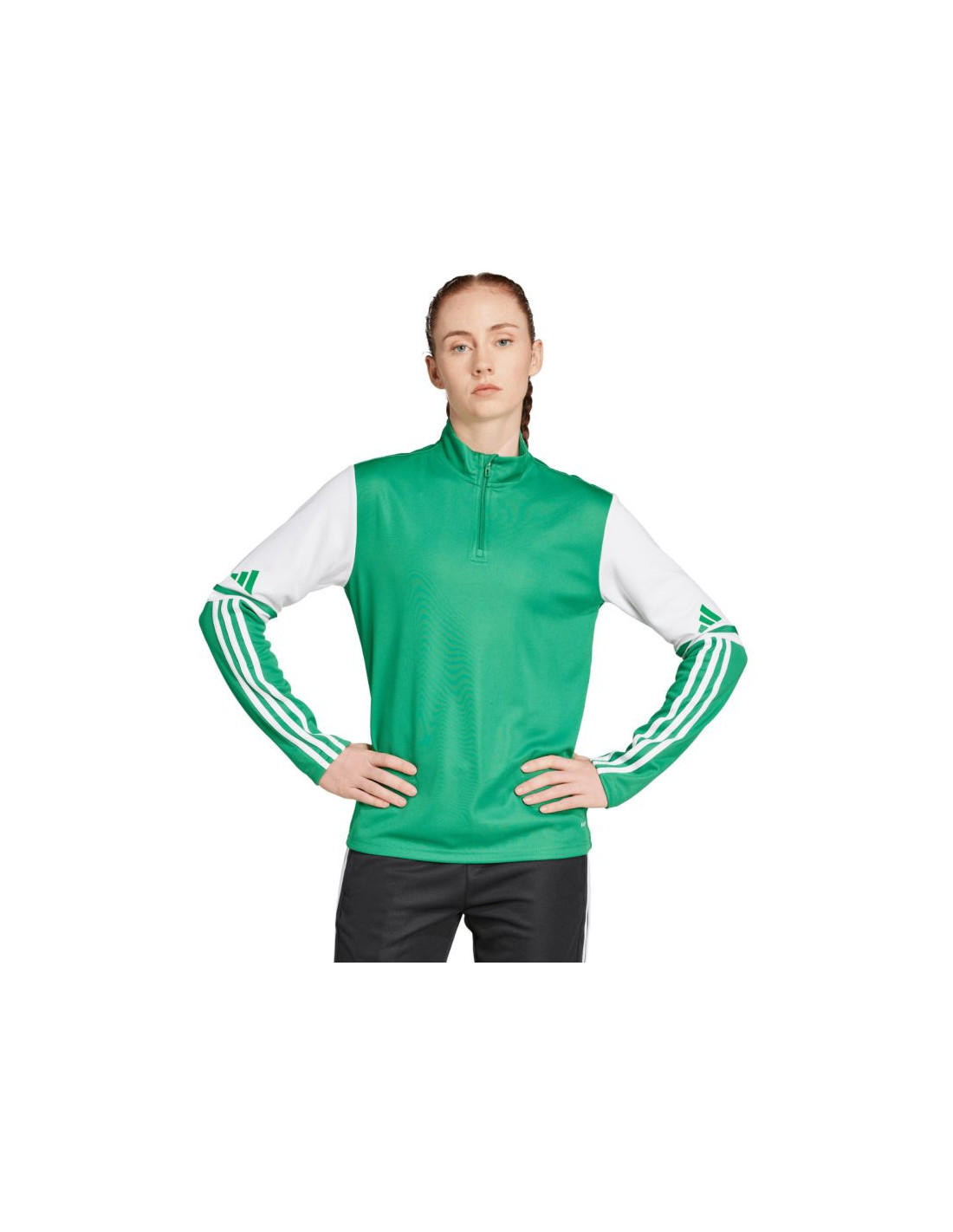 Bluza damska adidas Squadra 25 Training Top zielona JP3159 Bluza dla kobiet adidas sprawdzi się podczas treningów. Standardowy krój. Szybkoschnąca tkanina z technologią Aeroready odprowadza nadmiar wilgoci. Zamek sięgający do połowy piersi zakończono patką chroniącą podbródek. Stójka. Małe logo. Paski na części rękawów. Ten produkt jest wykonany z wysokiej jakości materiałów pochodzących z recyklingu. Materiał: 100% poliester pochodzący z recyklingu