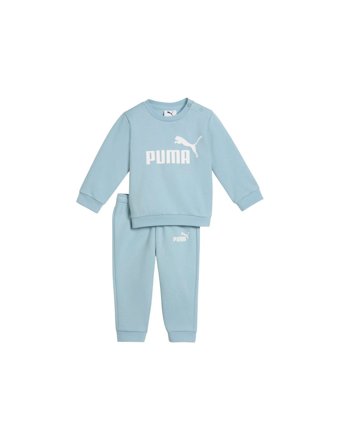 Dres dla dzieci Puma Minicats ESS Crew miętowy 686280 48 Dres dla dzieci Puma sprawdzi się na co dzień. Składa się z bluzy oraz spodni. Wykonany z miękkiej, przyjemnej w dotyku bawełnianej dzianiny. Materiał o średniej grubości. Nowoczesny nadruk. Elastyczna talia w spodniach, uzupełniona o regulowane troczki. Ściągacze przy mankietach bluzy i nogawkach. Materiał główny: 68% bawełna, 32% elastanŚciągacze: 97% bawełna, 3% elastan