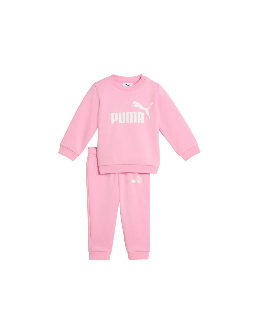 Dres dla dzieci Puma Minicats ESS Crew różowy 686280 70 Dres dla dzieci Puma sprawdzi się na co dzień. Składa się z bluzy oraz spodni. Wykonany z miękkiej, przyjemnej w dotyku bawełnianej dzianiny. Materiał o średniej grubości. Nowoczesny nadruk. Elastyczna talia w spodniach, uzupełniona o regulowane troczki. Ściągacze przy mankietach bluzy i nogawkach. Materiał główny: 68% bawełna, 32% elastanŚciągacze: 97% bawełna, 3% elastan