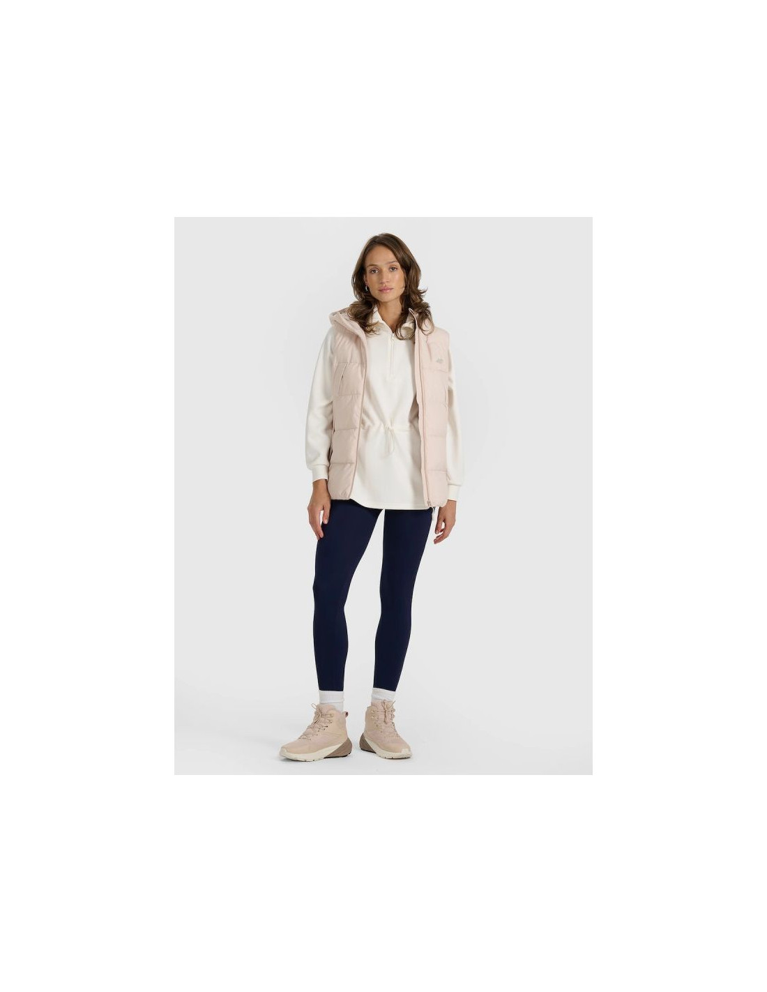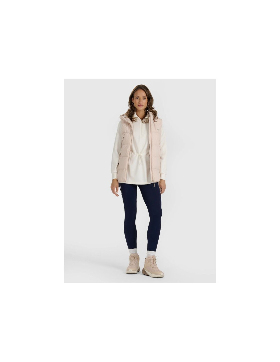 Damski bezrękawnik pikowany 4F to praktyczna warstwa na sezon przejściowy i chłodniejsze dni, kiedy liczy się komfort cieplny oraz swoboda ruchów. Regularny krój wygodnie układa się na sylwetce, a dłuższy fason zapewnia lepszą osłonę i dodatkowy komfort podczas codziennego użytkowania.