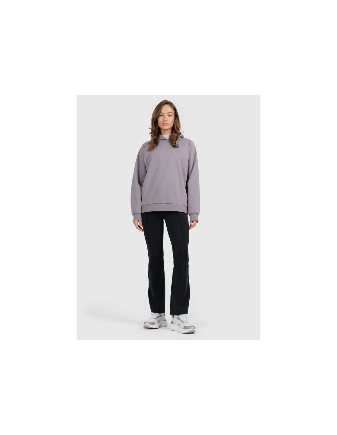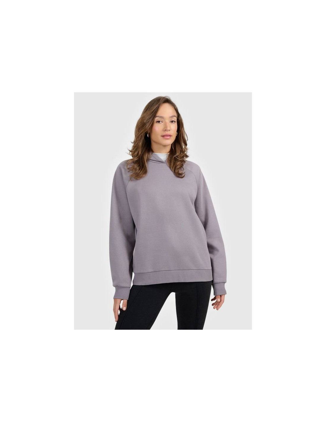 Model ma okrągły dekolt, konstrukcję bez zapięcia oraz fason bez kieszeni, co nadaje całości prosty i funkcjonalny wygląd. To praktyczna bluza damska, która sprawdzi się wszędzie tam, gdzie liczy się wygoda, miękkość i codzienny luz.