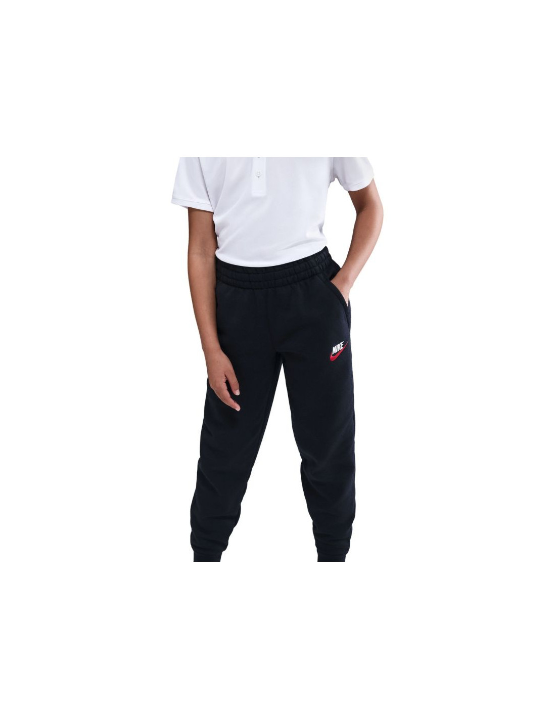 Spodnie dla dzieci Nike Sportswear Club Fleece czarne FD3008 015 Spodnie dresowe dla dzieci Nike sprawdzą się na co dzień. Miękka konstrukcja jest połączeniem oddychających, bawełnianych włókien oraz trwałego poliestru. Elastyczna talia regulowana sznurkiem. Klasyczny krój. Dwie, otwarte kieszenie boczne. Estetyczne wykończenie w postaci ściągaczy u dołu nogawek. Wyszywane logo producenta. Materiał: część główna: 80% bawełna, 20% poliester; wnętrze kieszeni: 100% bawełna