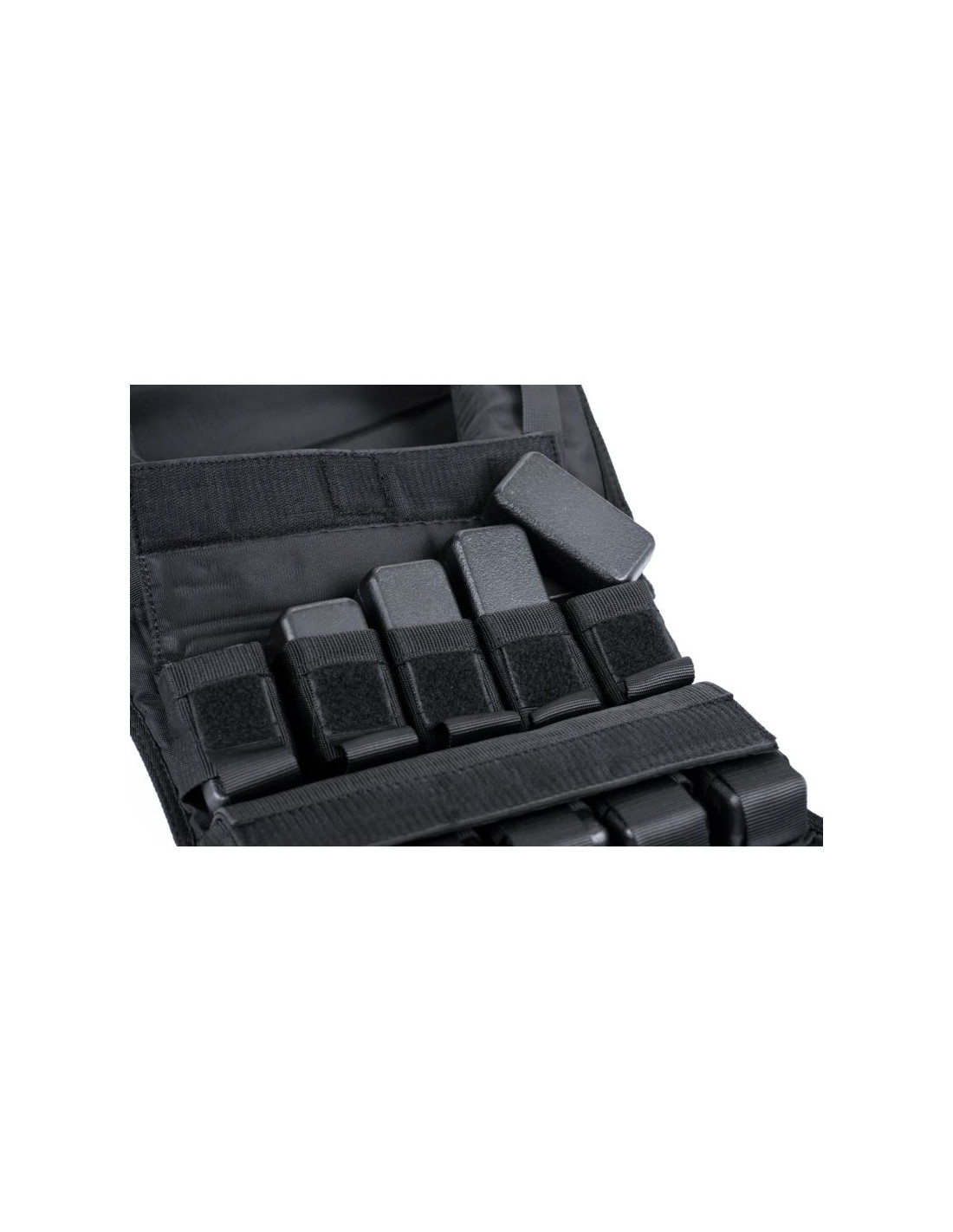 Szczególne wzmocnienie w strefie ramion sprawia, że nawet przy 20 kg kamizelka nie wbija się w ciało i nie powoduje dyskomfortu podczas ruchu.