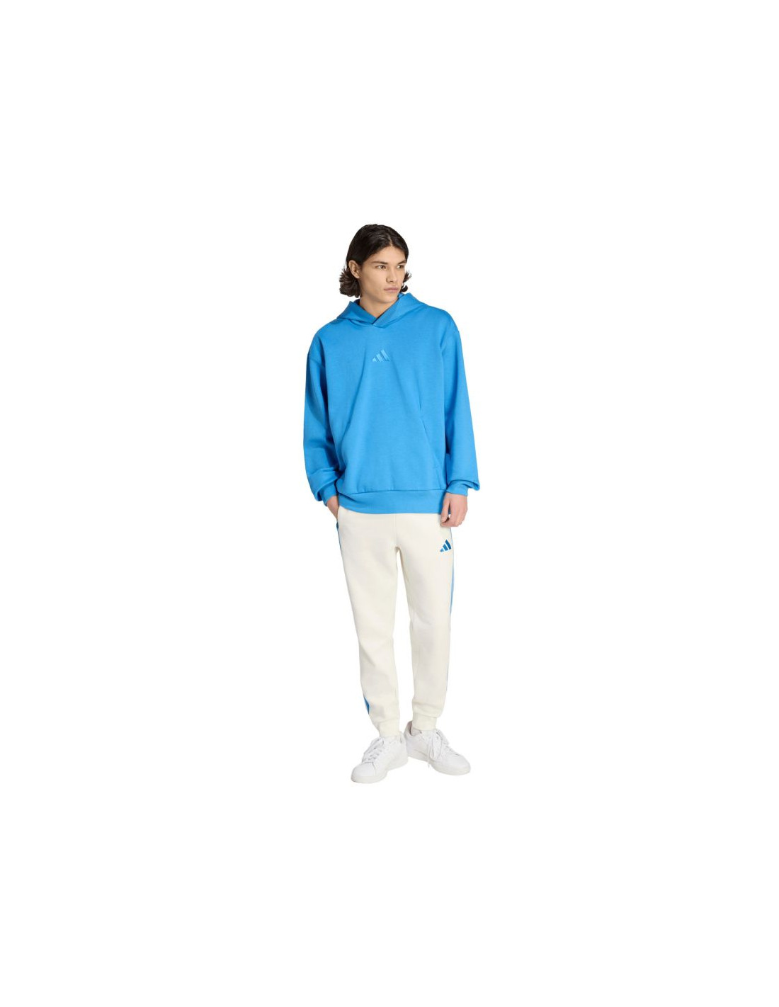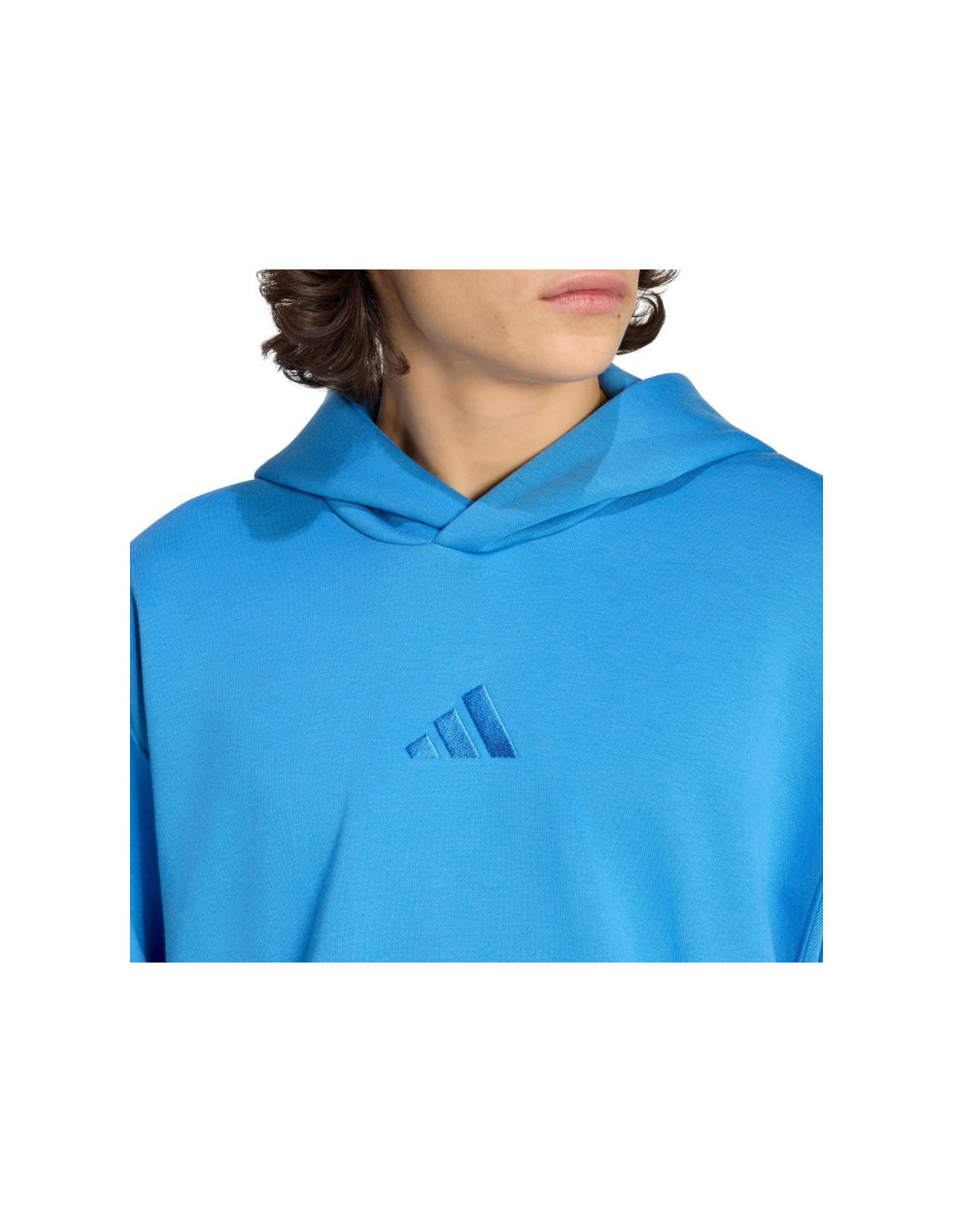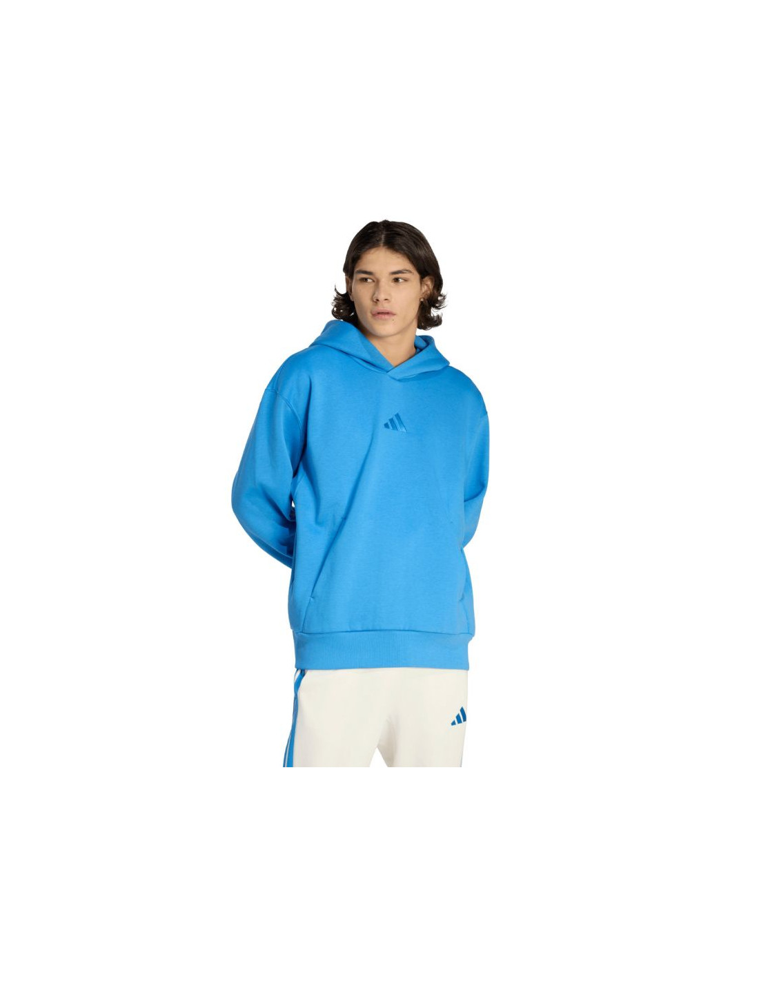 Bluza męska adidas ALL SZN Fleece Hoodie niebieska KC3182 Bluza dla mężczyzn adidas sprawdzi się podczas treningów. Miła w dotyku, bawełniana dzianina została połączona z poliestrowymi włóknami. Polarowe podszycie. Szerszy w tułowiu krój. Od frontu duża kieszeń. Elastyczne ściągacze przy rękawach i na dole. Niewielkie, wyszywane logo. Materiał: 70% bawełna, 30% poliester
