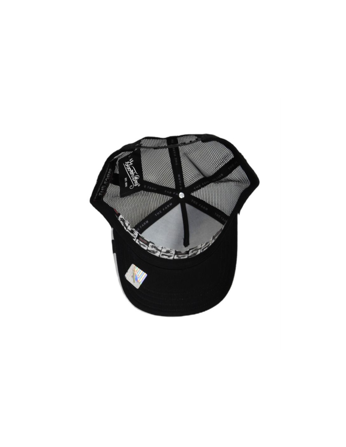 Czapka typu trucker wkolorzeczarno-szarym z żakardową metką marki Goorin Bros na daszku.