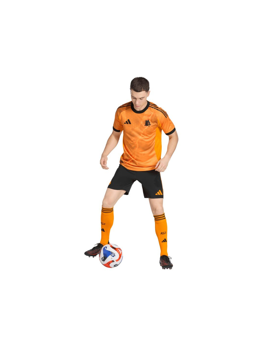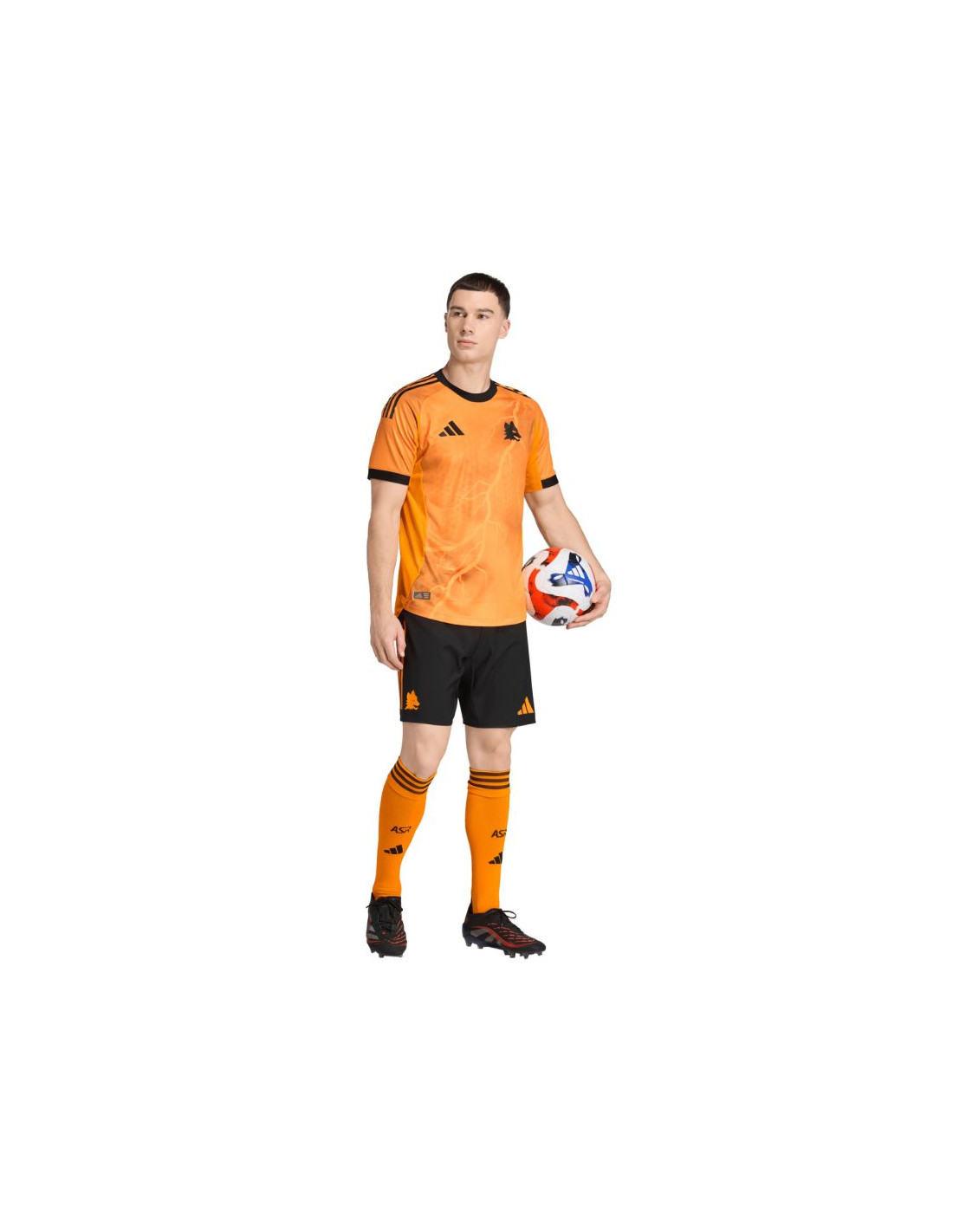 Koszulka męska adidas AS Roma 25/26 pomarańczowa JP4801 Koszulka męska AS Roma od adidas łączy styl i komfort na boisku. Dopasowany krój i zaokrąglony dekolt zapewniają wygodę podczas gry, a lekki materiał z poliestru pochodzącego z recyklingu gwarantuje pełną swobodę ruchów. Logo AS Roma naniesione termotransferem dodaje koszulce charakteru i klubowego prestiżu. Materiał: 100% poliester pochodzący z recyklingu