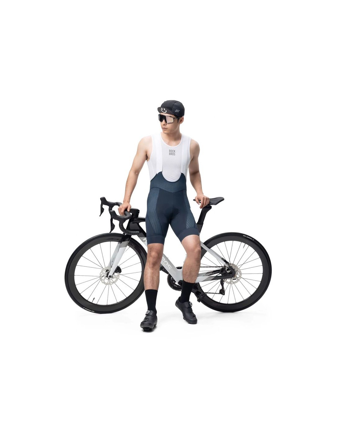 Spodenki rowerowe z szelkami Rockbros YDDK009 męskie krótkie z wkładką Rozmiar XL - ciemnoniebieskie