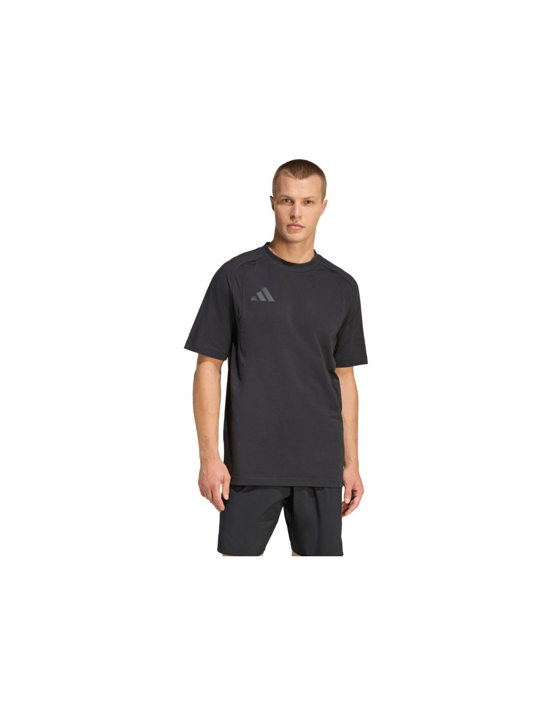 Koszulka męska adidas Tiro 26 Travel Tee czarna JM5543 T-shirt męski sprawdzi się na co dzień. Dominująca bawełna wspomaga naturalna wentylację. Dodatek poliestrowych włókien. Regularny krój. Okrągły dekolt. Niewielkie logo. Fason z linii Tiro. Materiał: 90% bawełna, 10% poliester