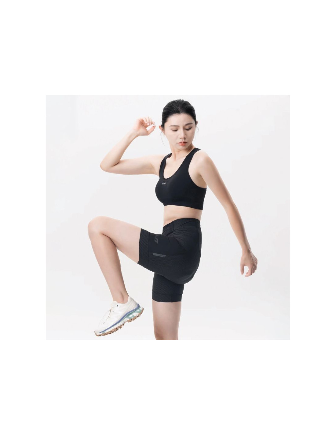 Wbudowane wkładki zostały połączone z konstrukcją modelu, co pomaga utrzymać wygodę, stabilność i bardziej jednolite podtrzymanie w czasie ćwiczeń.