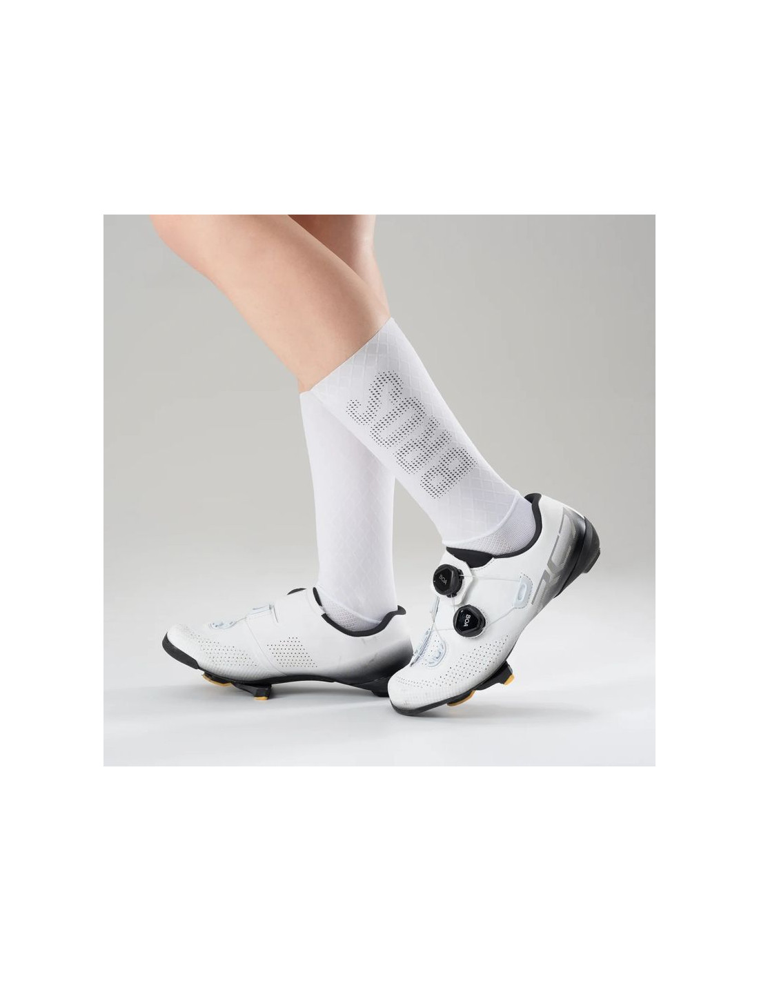 Dzianina z dodatkiem spandexu zwiększa elastyczność skarpet, dzięki czemu dobrze przylegają do stopy i zapewniają stabilność podczas jazdy.