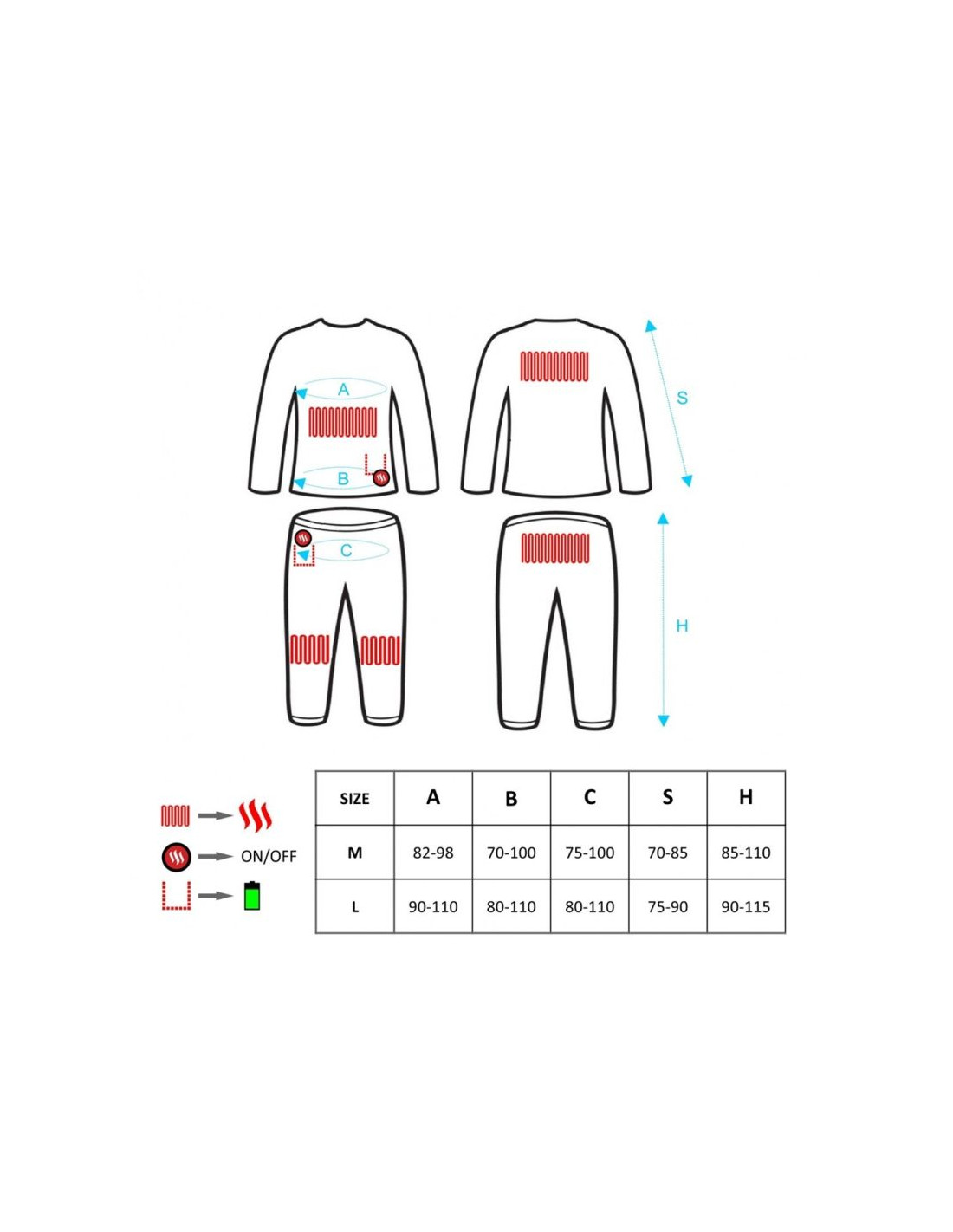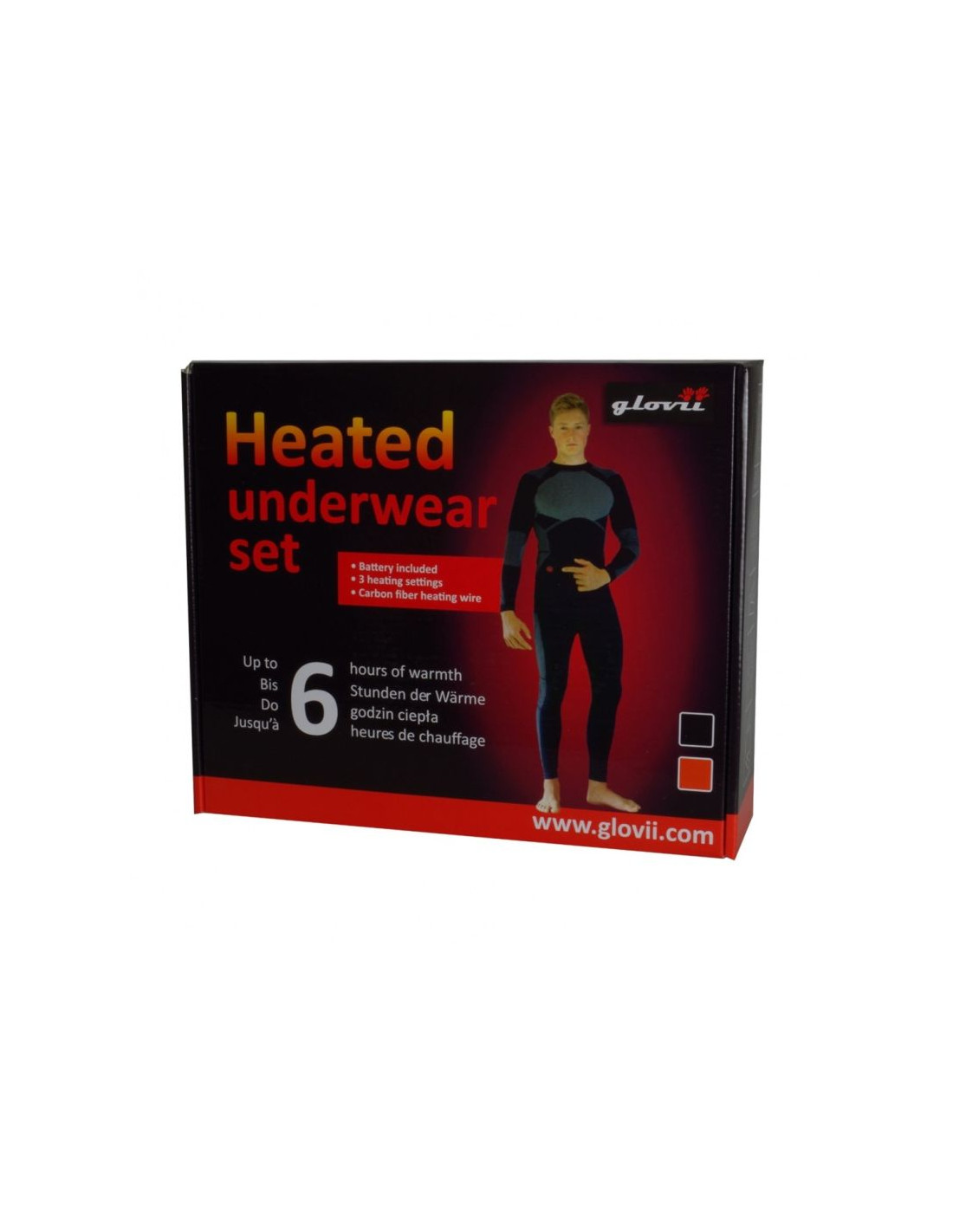 Glovii ogrzewany zestaw bielizny termoaktywnej bluza i spodnie, rozmiar l, czarny, baterie i ładowarka w zestawie, gxbl