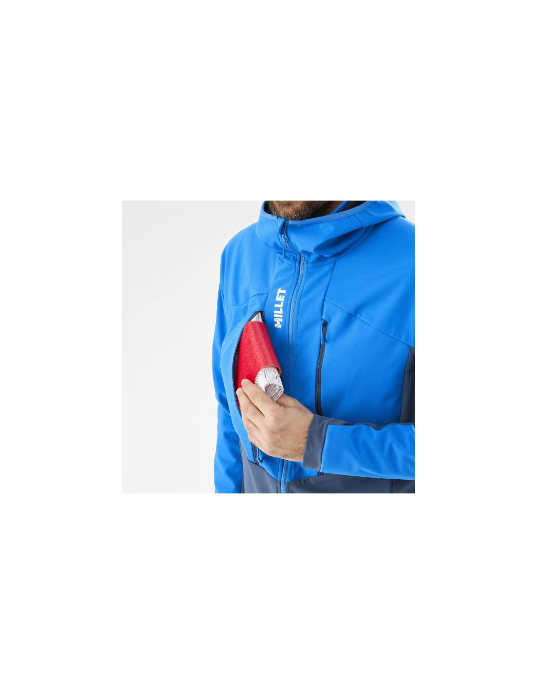 Lekki, elastyczny materiał kurtki pozwala na pełną swobodę ruchów, a jej gładka powierzchnia sprawia, że łatwo się ją zakłada i zdejmuje. Dwie duże kieszenie na piersi idealnie nadają się do przechowywania niezbędnych drobiazgów, a dedykowana kieszeń na telefon chroni urządzenie przed wilgocią.