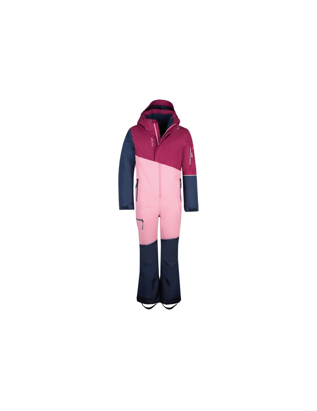 Kombinezon dla dzieci wykonany z oddychającego, wiatroszczelnego i wodoodpornego materiału zapewnia ciepło dzięki izolacji i polarowej podszewce. Regulowane mankiety, odpinane szlufki na stopy oraz kaptur zapewniają komfort.
