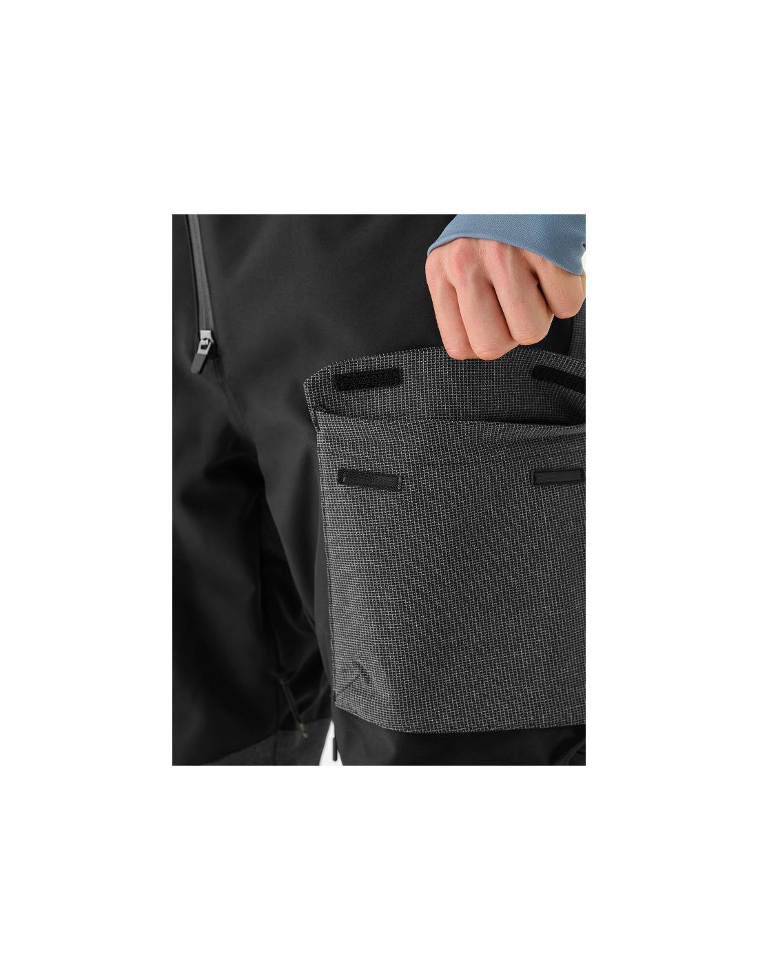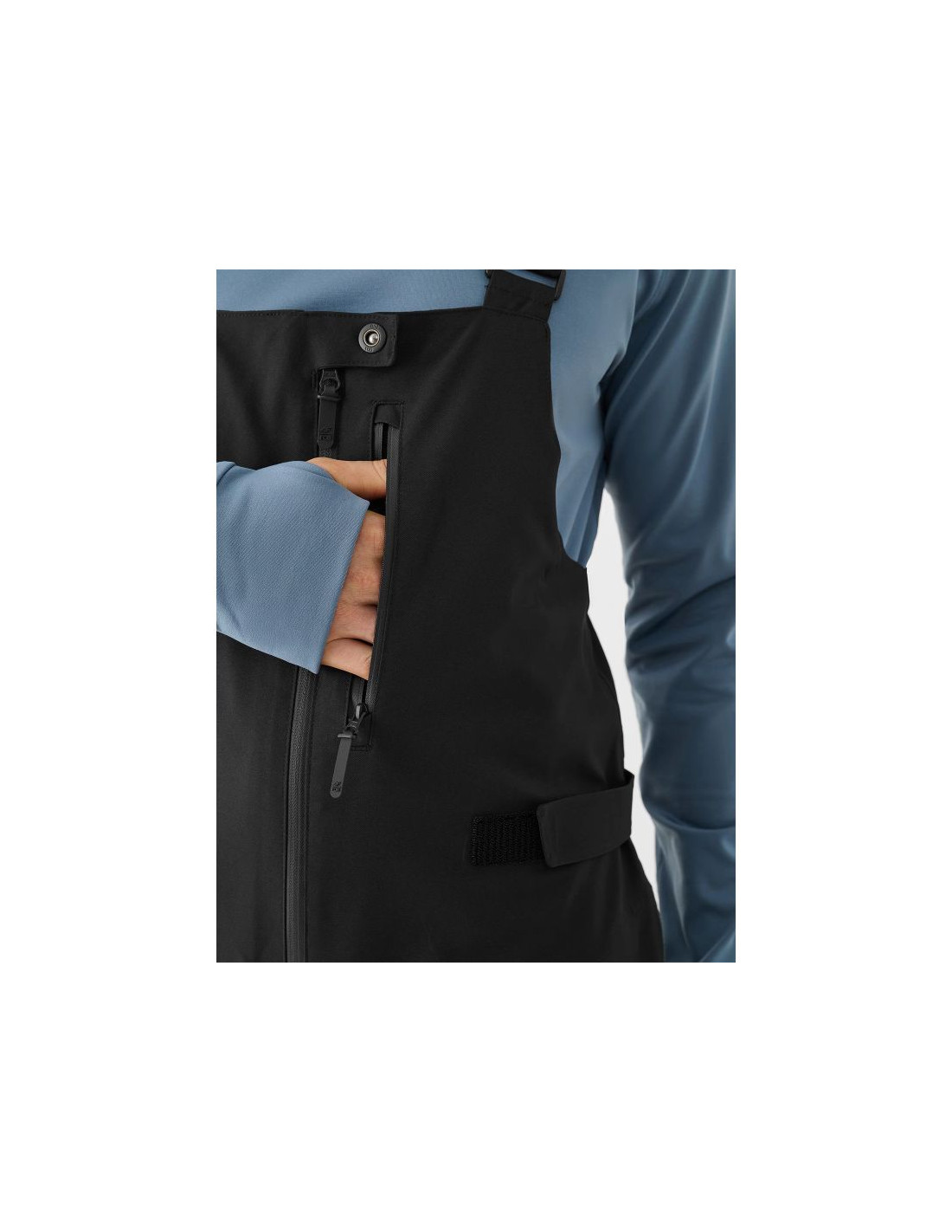 Męskie snowboardowe spodnie zimowe posiadają 2 kieszenie po bokach zapinane na zamek. Kieszeń piersiowa z zapięciem na zamek i z dodatkową plisą na napy. Spodnie na narty i snowboard wyposażone są także w system wentylacji regulowany na zamek, umieszczony po wewnętrznej stronie ud. Pas z potrójnym zapięciem na suwak, rzep oraz napy. Dodatkowo na biodrach znajdują się rzepy pozwalające na precyzyjne dopasowanie w talii. Elementy odblaskowe poprawiające widoczność na stoku.