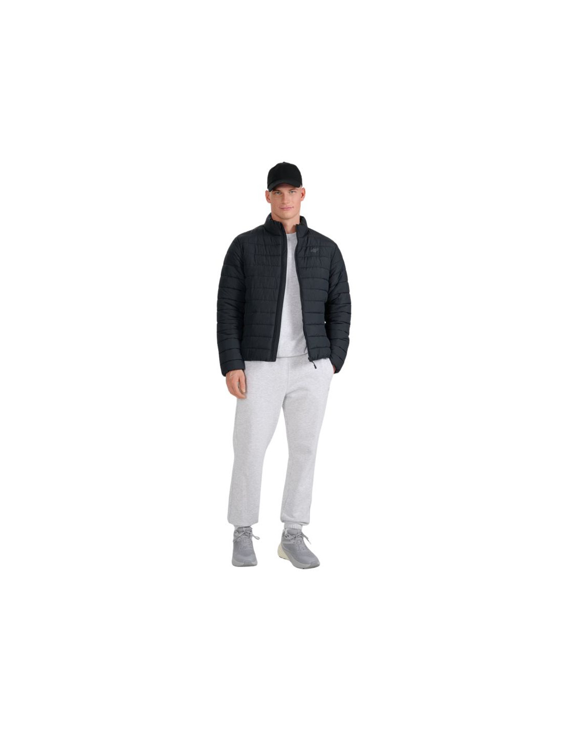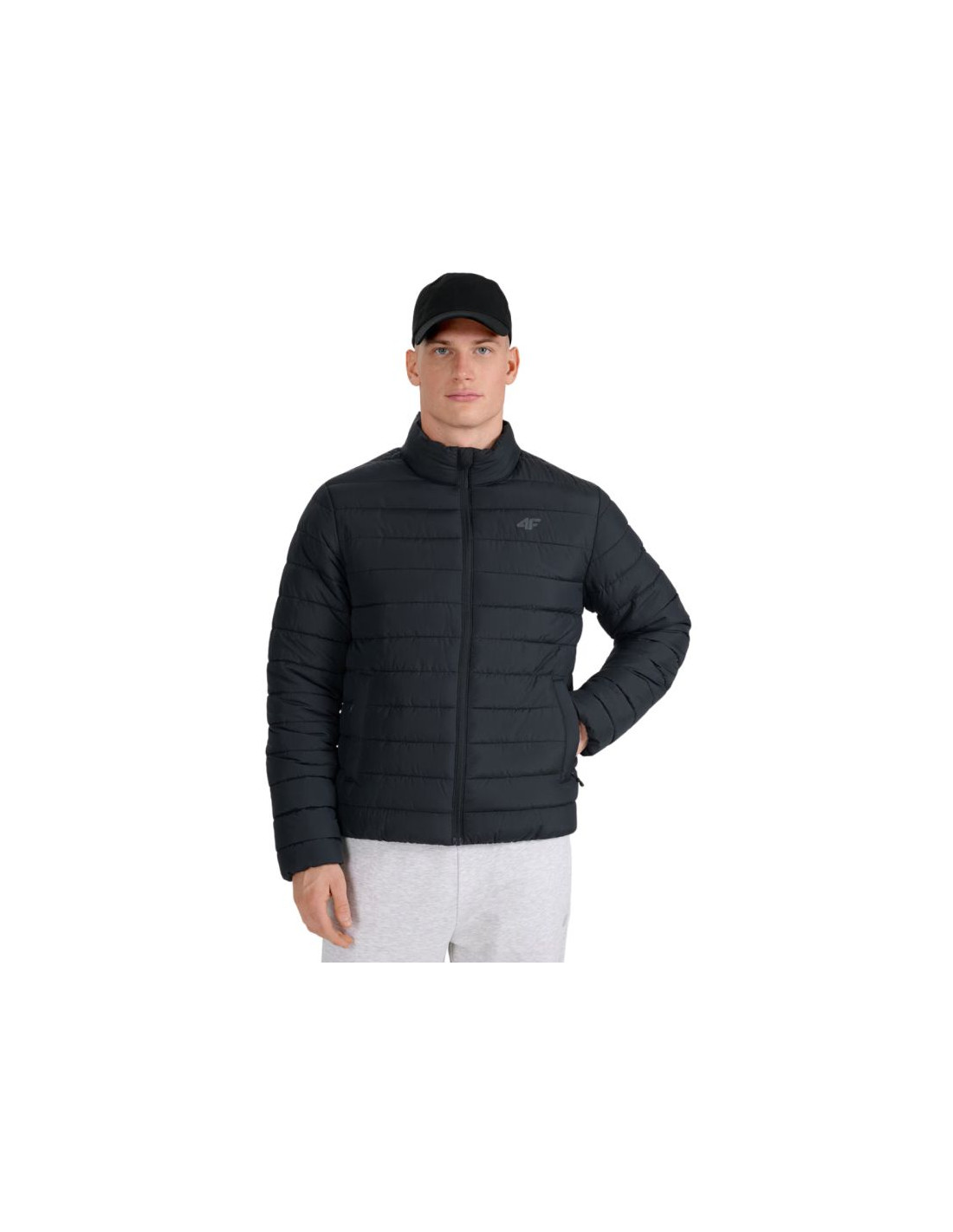 Kurtka męska puchowa 4F M597 głęboka czerń 4FWAW25TDJAM597 20S Kurtka męska 4F o lekkiej konstrukcji sprawdzi się podczas cieplejszych lub pochmurnych dni w okresie przejściowym. Standardowy krój z poziomym pikowaniem i niską stójką. Hydrofobowa impregnacja materiału zewnętrznego sprawia, że wilgoć skrapla się na powierzchni tkaniny lub dzianiny, po czym swobodnie po niej spływa. Wypełnienie z puchu syntetycznego jest trwalsze i łatwiejsze w utrzymaniu niż puch naturalny. Nawet przy kontakcie z wilgocią, zachowuje swoje właściwości izolacyjne przez dłuższy czas oraz o wiele szybciej schnie. Dane techniczne:· Materiał główny: 100% poliester· Podszewka: 100% poliester· Wypełnienie z puchu syntetycznego pochodzącego w 100% z recyklingu, zapewnia odpowiednie właściwości izolacyjne nawet w wilgotnych warunkach· Regularny krój - wygodne dopasowanie do sylwetki bez ograniczania ruchów· Standardowa długość do bioder - uniwersalny fason na co dzień· Klasyczne poziome pikowanie - równomierne rozmieszczenie wypełnienia i stylowy wygląd· Lekka konstrukcja - komfort noszenia bez zbędnego obciążenia· Hydrofobowa powłoka zewnętrzna - ogranicza wchłanianie wilgoci· Tkanina rip stop - zwiększona odporność na rozdarcia i trwałość· Syntetyczne wypełnienie z recyklingu - skuteczna izolacja nawet w wilgotnych warunkach· Stójka - dodatkowa ochrona szyi przed chłodem· Mankiety i dół zakończone gumą - lepsze dopasowanie i ochrona przed wiatrem· 2 boczne kieszenie na zamek - bezpieczne przechowywanie drobiazgów· Wewnętrzna kieszeń na zamek - dodatkowe miejsce na cenne przedmioty· Zamek główny z plisą przeciwwiatrową - zwiększona ochrona przed utratą ciepła