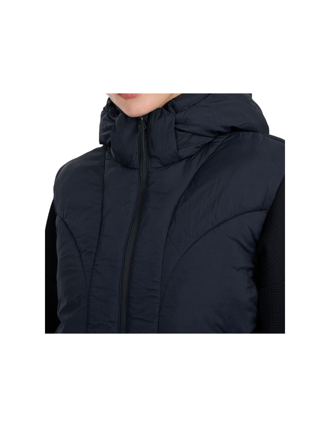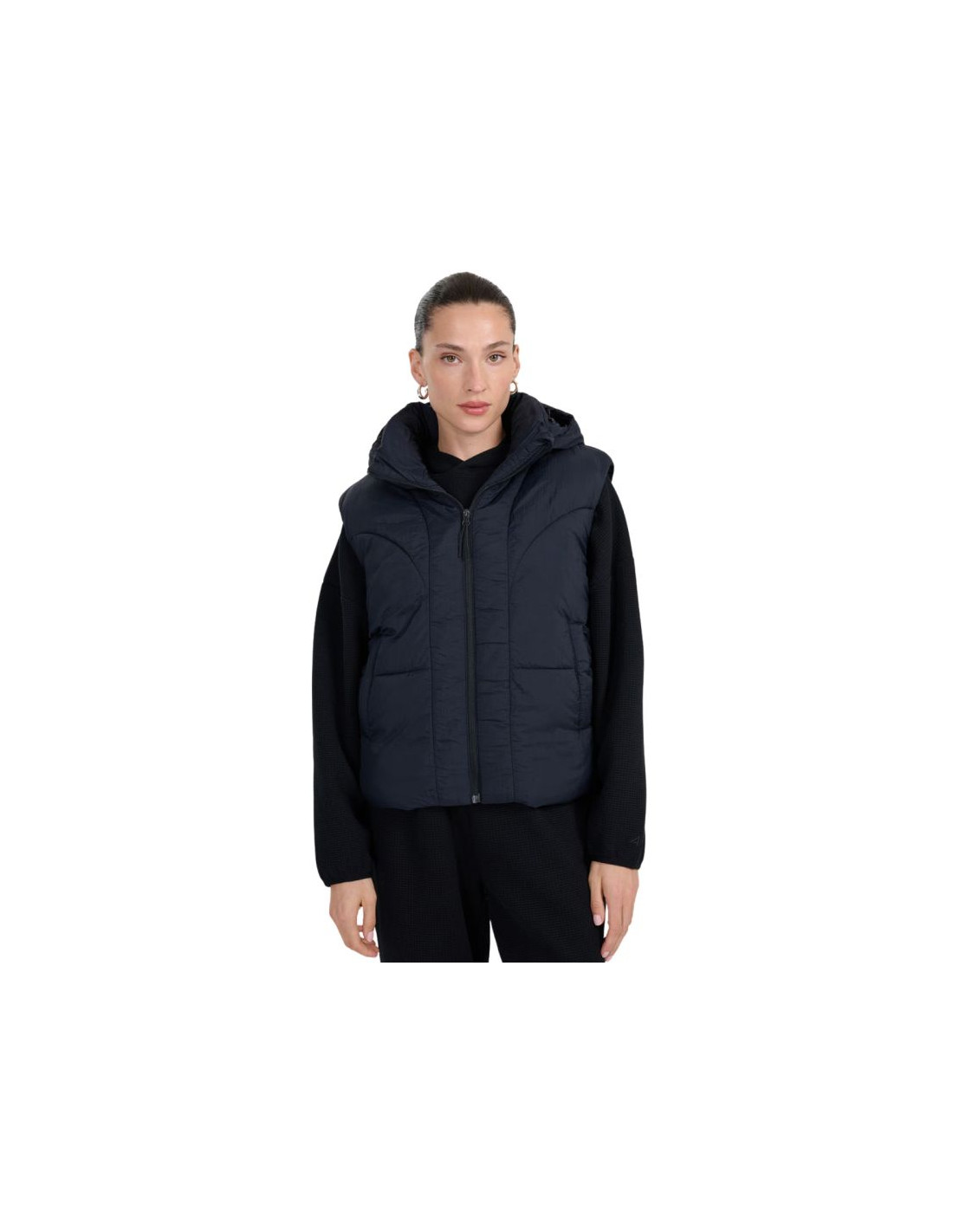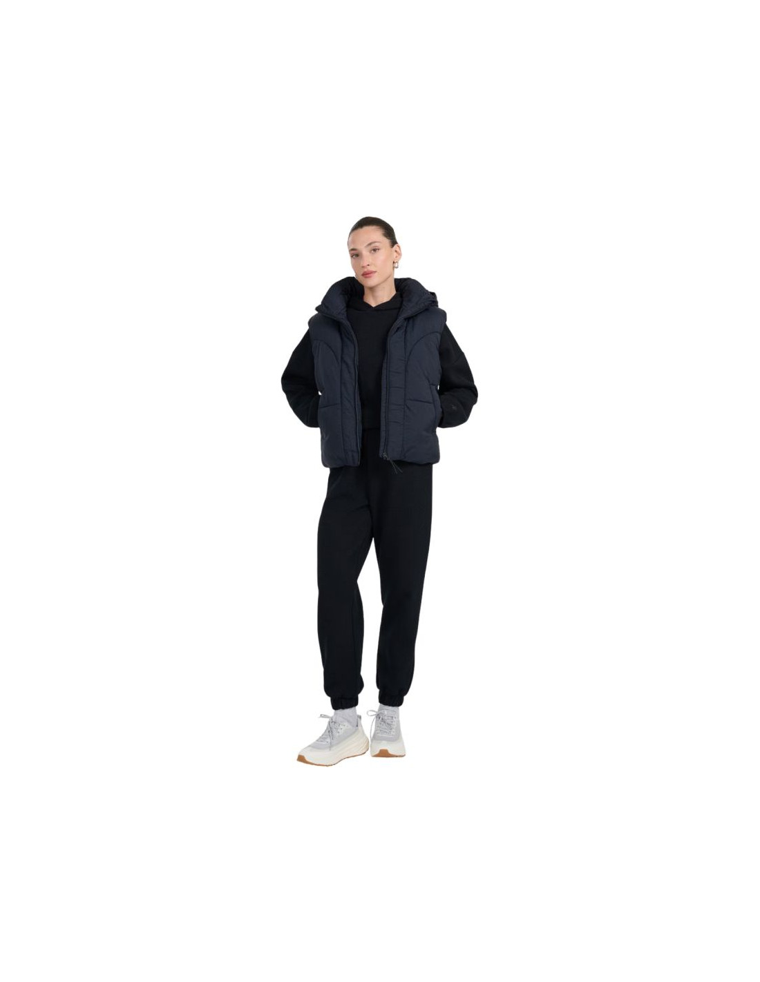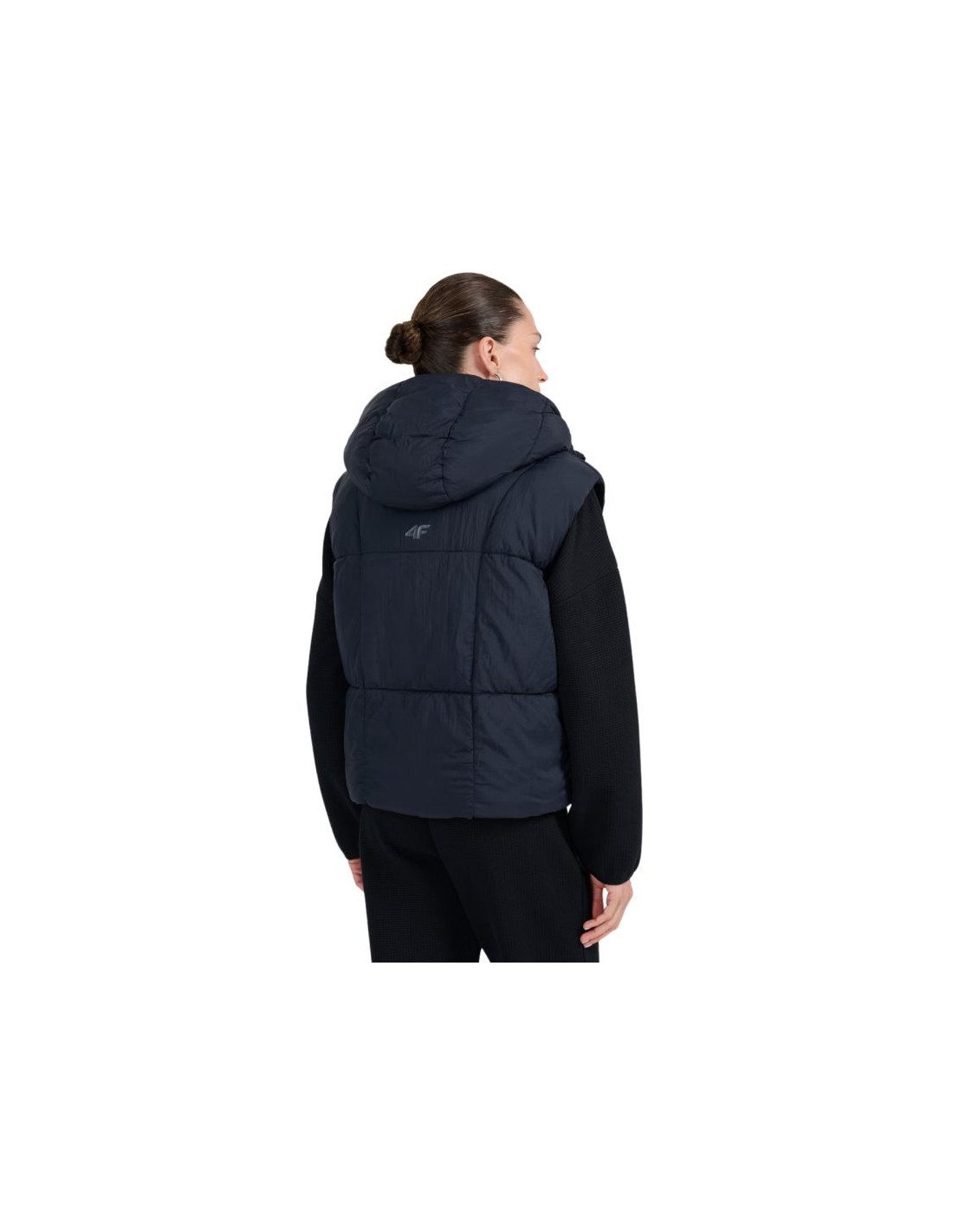 Kamizelka damska 4F F299 głęboka czerń 4FWAW25TVJAF299 20S Damski bezrękawnik 4F jest praktyczną częścią garderobą w okresie przejściowym, która oferuje niezwykłą wygodę. Dane techniczne:· Materiał główny: 100% poliester· Podszewka: 100% poliester· Wypełnienie: 100% poliester (puch syntetyczny)· Hydrofobowa powłoka zewnętrzna - chroni materiał przed wchłanianiem wilgoci i lekkim deszczem· Lekka ocieplina poliestrowa - zapewnia ciepło bez uczucia ciężkości, łatwa w pielęgnacji· Pikowane panele - dodają charakteru i równomiernie rozkładają ocieplinę· Odpinany kaptur z regulacją - możliwość dopasowania i noszenia w różnych warunkach· Stójka pod szyją -dodatkowo chroni przed chłodem i wiatrem· Zamek jednokierunkowy z przodu -łatwe i szybkie zakładanie oraz zdejmowanie kamizelki· 2 kieszenie boczne bez zapięcia - szybki dostęp do drobiazgów i wygodne miejsce na dłonie· Dół regulowany ściągaczem - tunelowy ściągacz ze stoperami pozwala dopasować obwód· Regularny krój - dopasowuje się do sylwetki bez uczucia ucisku