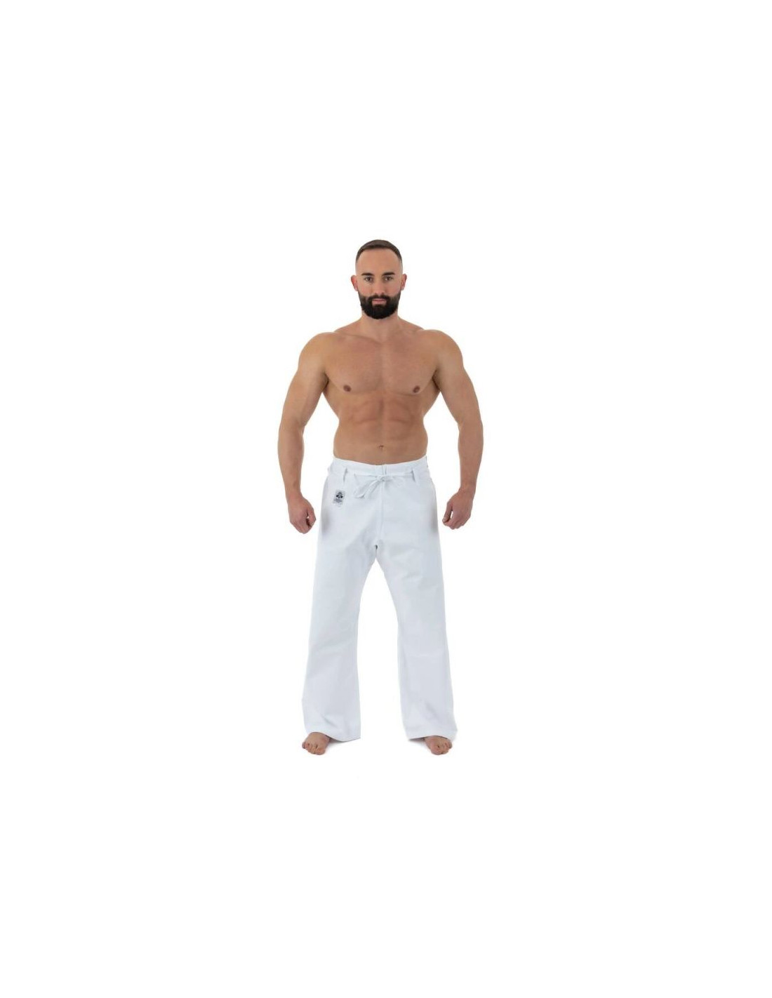Wygodny krój pozwala na swobodne wykonywanie technik, a szerokie spodnie z klinem w kroku dają pełną swobodę ruchów, szczególnie podczas kopnięć. Dla dodatkowego komfortu, spodnie są wykończone gumą i regulowanym sznurkiem.