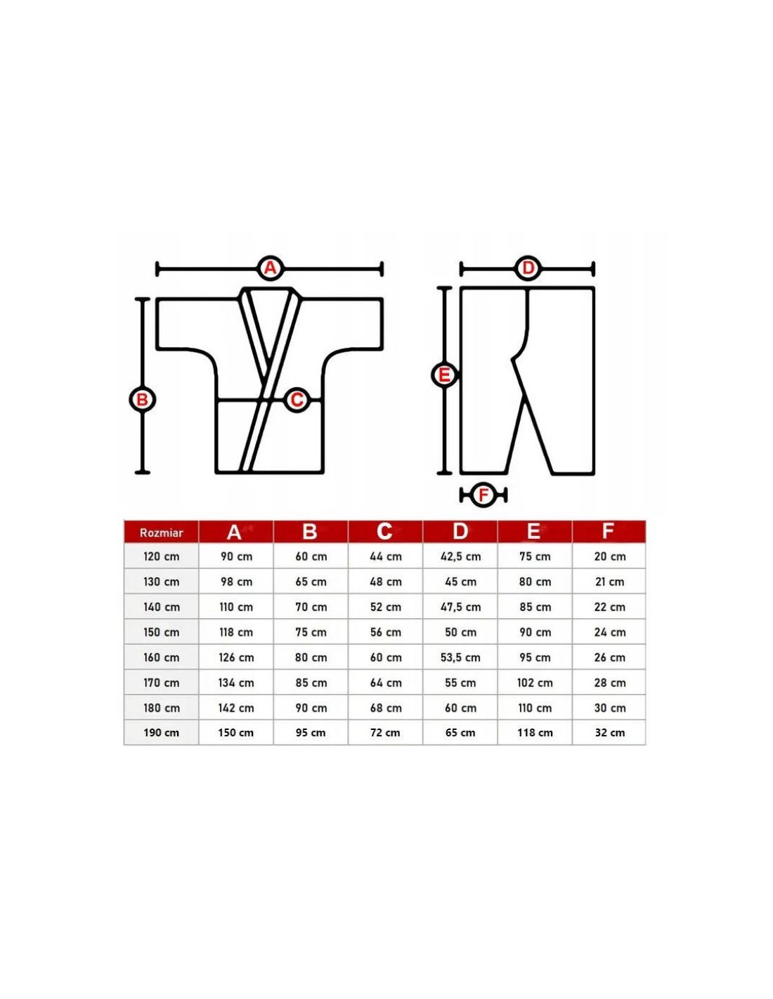 Tabela Rozmiarów Karategi: