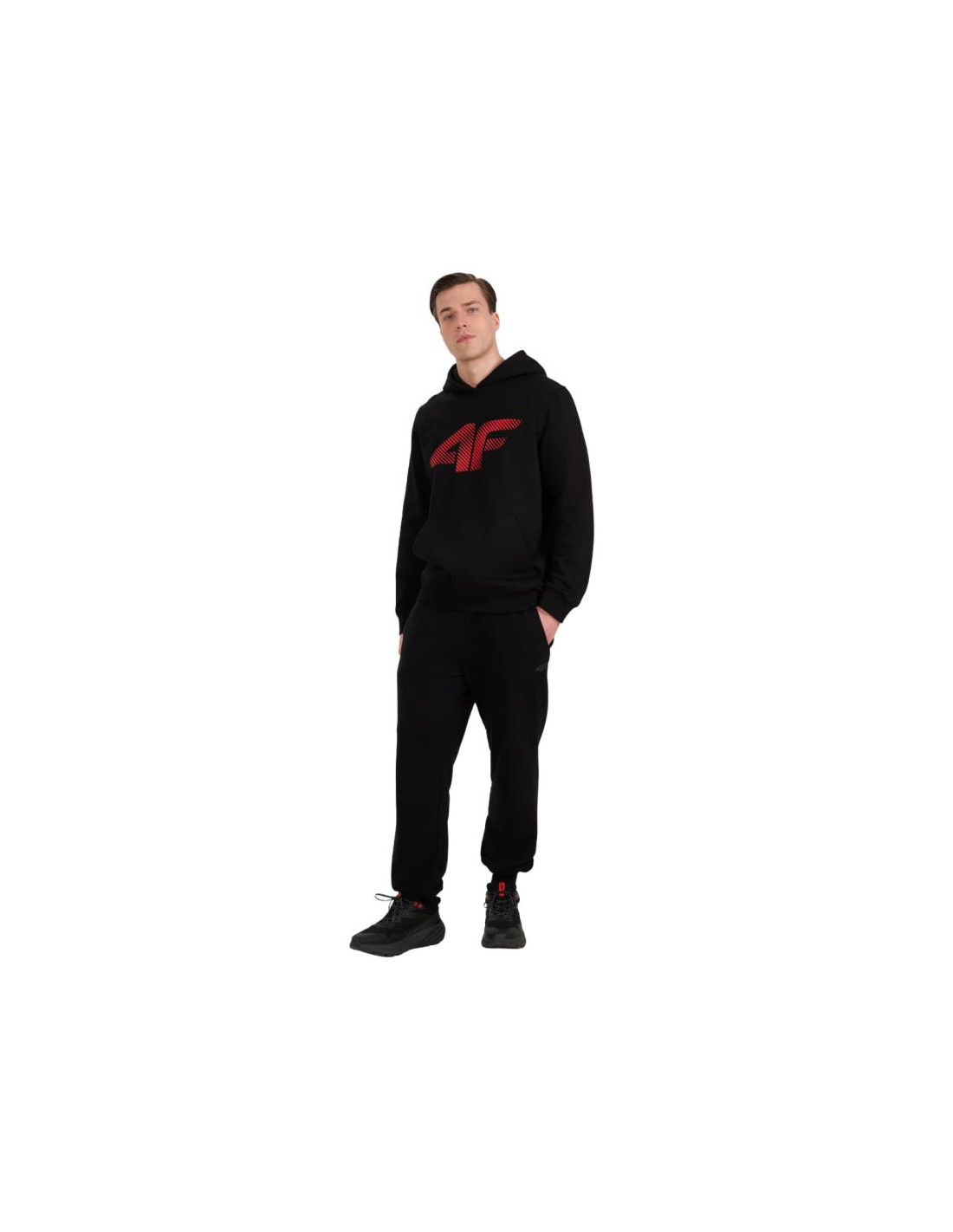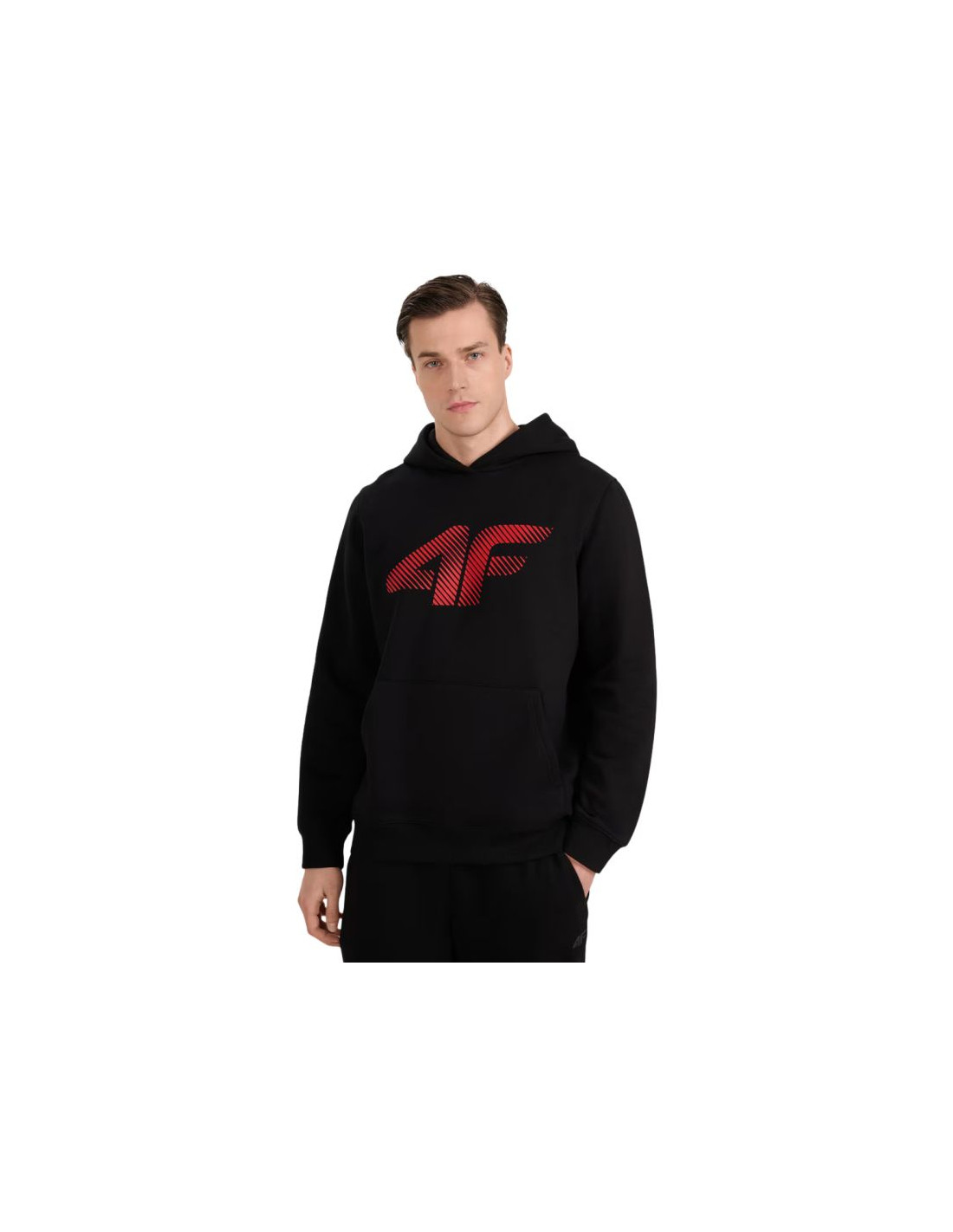 Bluza męska 4F M1766 głęboka czerń 4FWMM00TSWSM1766 020S Męska bluza 4F pozwoli na tworzenie wygodnych stylizacji idealnych na co dzień. Dane techniczne:· Materiał główny: 80% bawełna, 20% poliester· Materiał dodatkowy: 95% bawełna, 5% elastan· Jednostronnie czesane wnętrze zapewnia dodatkowe ciepło· Krój: regular, który wygodnie dopasowuje się do sylwetki· Standardowy fason sięgający do bioder· Wykonana w 80% z bawełny, dzięki czemu jest miękka, trwała i przyjemna w dotyku· Dodatek poliestru (20%) sprawia, że materiał jest wytrzymały i odporny na zużycie przez wiele sezonów· Jednolita kolorystyka pasująca do wielu stylizacji· Miękka w dotyku dzianina single jersey o gładkiej powierzchni· Dekolt ze zintegrowanym kapturem· Mankiety ze ściągaczem· Nadruk z przodu "4F"· Niezapinana kieszeń kangurka na przodzie· Wkładana przez głowę· Dół ze ściągaczem