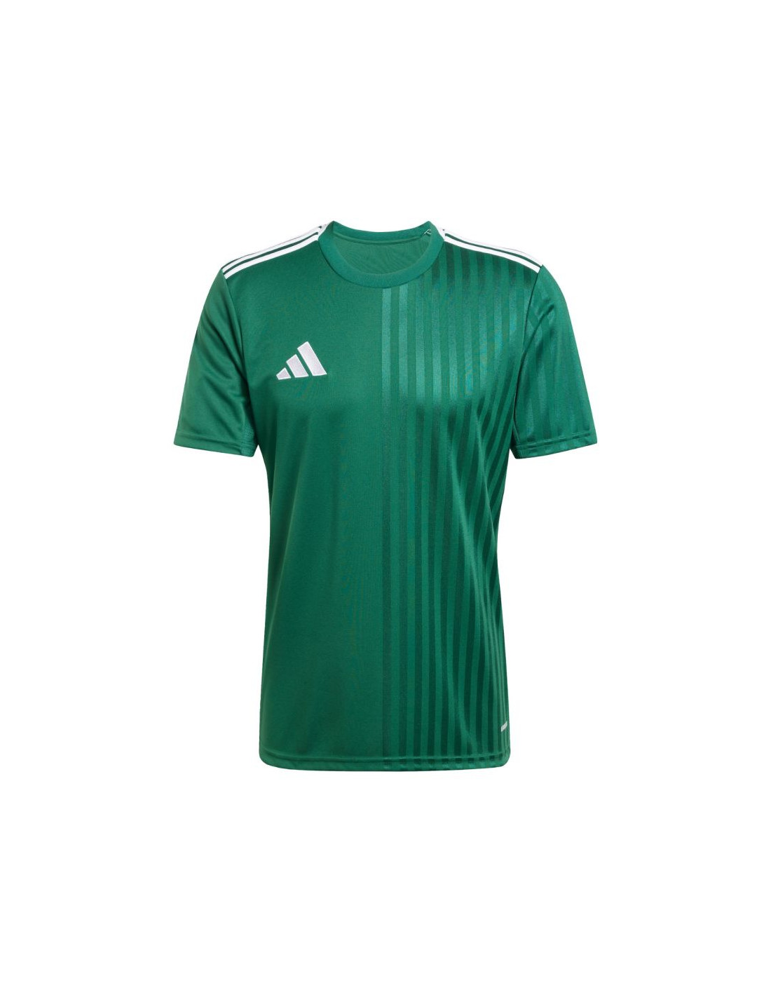 Koszulka męska adidas Campeon 25 Jersey zielona JF6063 Męska koszulka adidas sprawdzi się podczas rozgrywek meczowych. Wsparcie technologii Aeroready dba o odprowadzenie nadmiaru wilgoci. Dopasowany krój nie krepuje ruchów. Matowo-błyszczące wykończenie. Wstawki z siateczki pod pachami. Materiał: 100% poliester pochodzący z recyklingu
