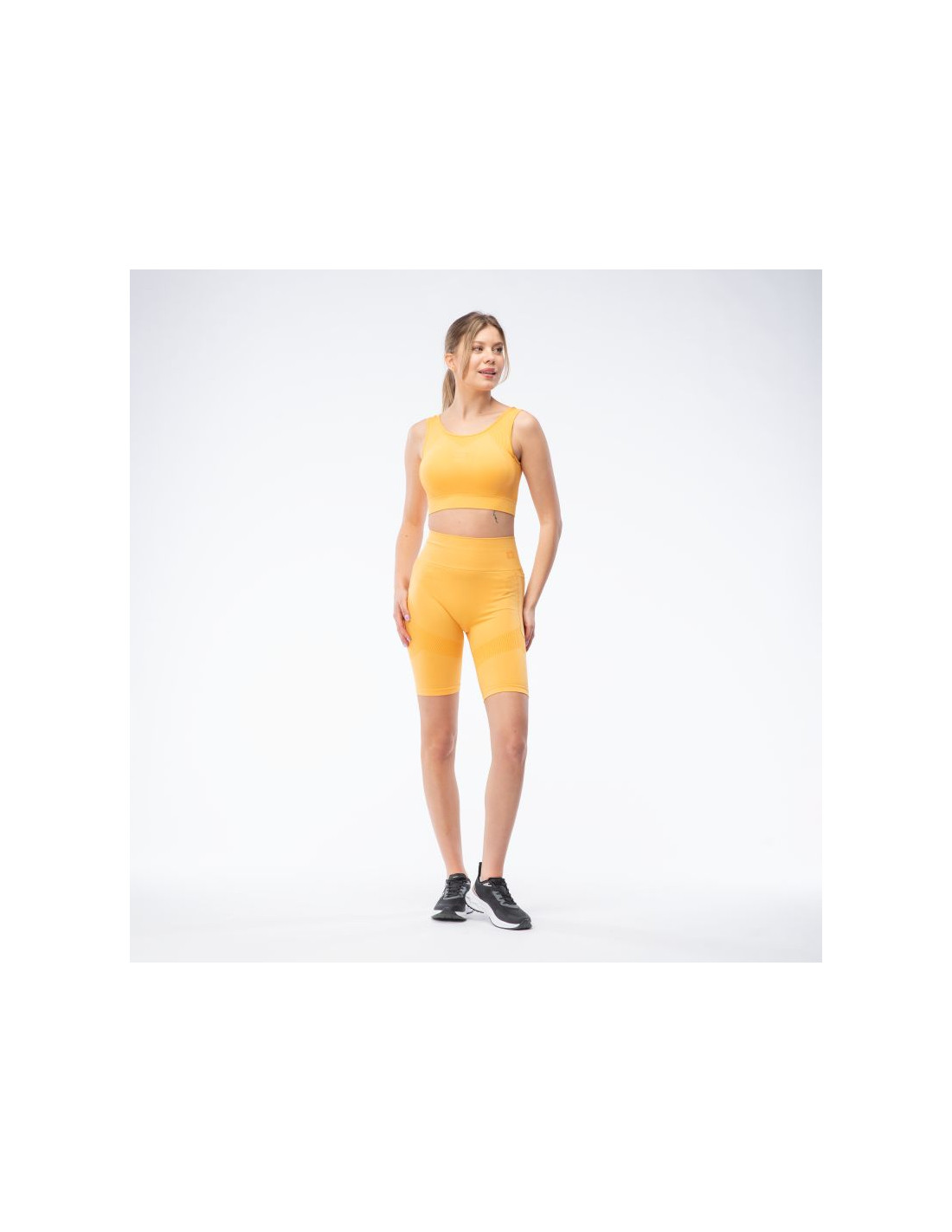 BIUSTONOSZ TRENIGOWY ROZMIAR: XS-XL SKŁAD MATERIAŁOWY: 60% NYLON, 32% POLIESTER, 8% ELASTAN SPECYFIKACJA: BEZSZWOWY WYJMOWANE MISECZKI NISKIE WSPARCIE