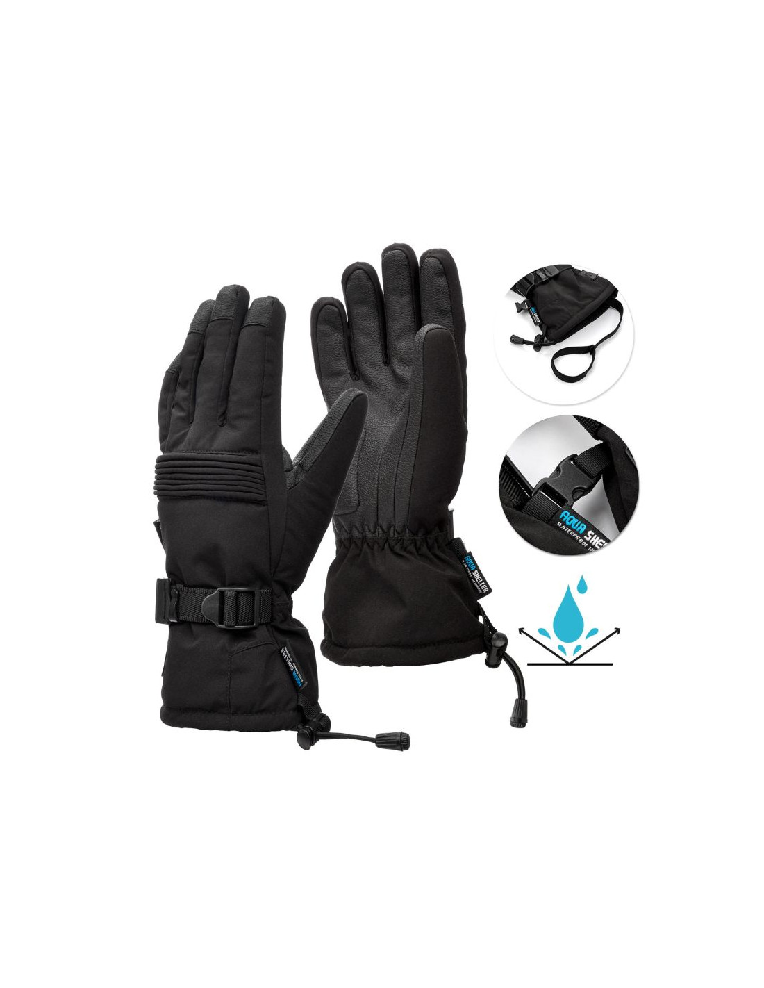 Ergonomia – regulacja za pomocą ściągaczy i sprzączek przesuwnych oraz gumki na nadgarstkach zabezpieczają wnętrze rękawic przed przedostaniem się chłodu i śniegu z zewnątrz. Sprawiają, że rękawice pozostają na swoim miejscu i nie zsuwają się z dłoni.