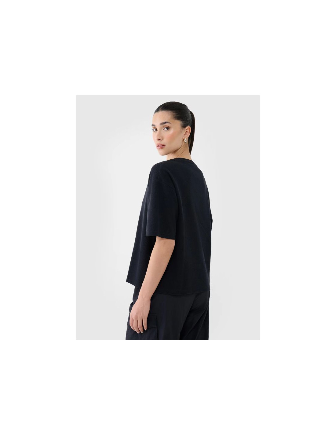 T-shirt damski 4Fz dzianiny waflowej – bawełniany T-shirt damski o kroju regular na co dzień