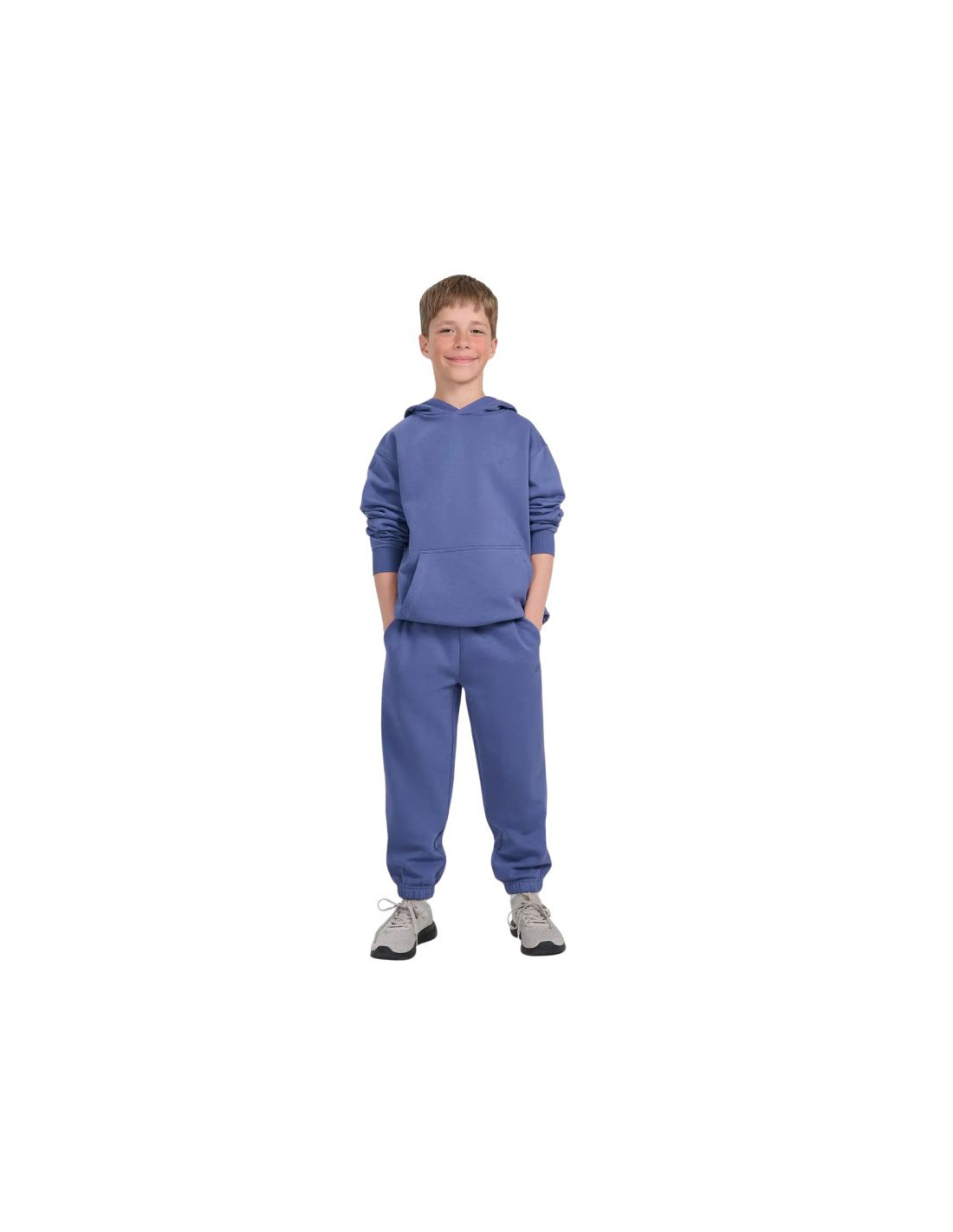 Bluza dla chłopca 4F M1945 niebieska 4FJWAW25TSWSM1945 33S Bluza dla chłopca 4F sprawdzi się na co dzień. Dane techniczne:· Materiał główny: 80% bawełna, 20% poliester· Materiał dodatkowy: 100% bawełna· Materiał dodatkowy 2: 95% bawełna, 5% elastan· Krój: oversize, który luźno układa się na sylwetce i zapewnia swobodę· Standardowy fason sięgający do bioder· Wykonana w 80% z bawełny, dzięki czemu jest miękka, trwała i przyjemna w dotyku· Dodatek poliestru (20%) sprawia, że materiał jest wytrzymały i odporny na zużycie przez wiele sezonów· Jednolita kolorystyka pasująca do wielu stylizacji· Dzianina dresowa french terry na zewnątrz jest gładka, a wewnątrz ma widoczny splot w postaci pętelki· Dekolt ze zintegrowanym kapturem· Mankiety ze ściągaczem· Niezapinana kieszeń kangurka na przodzie· Wkładana przez głowę· Dół ze ściągaczem