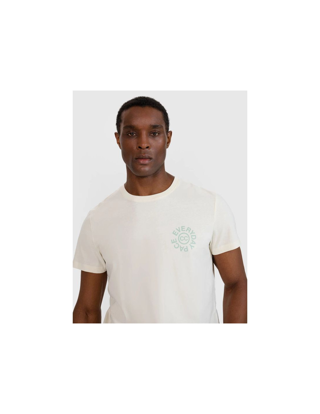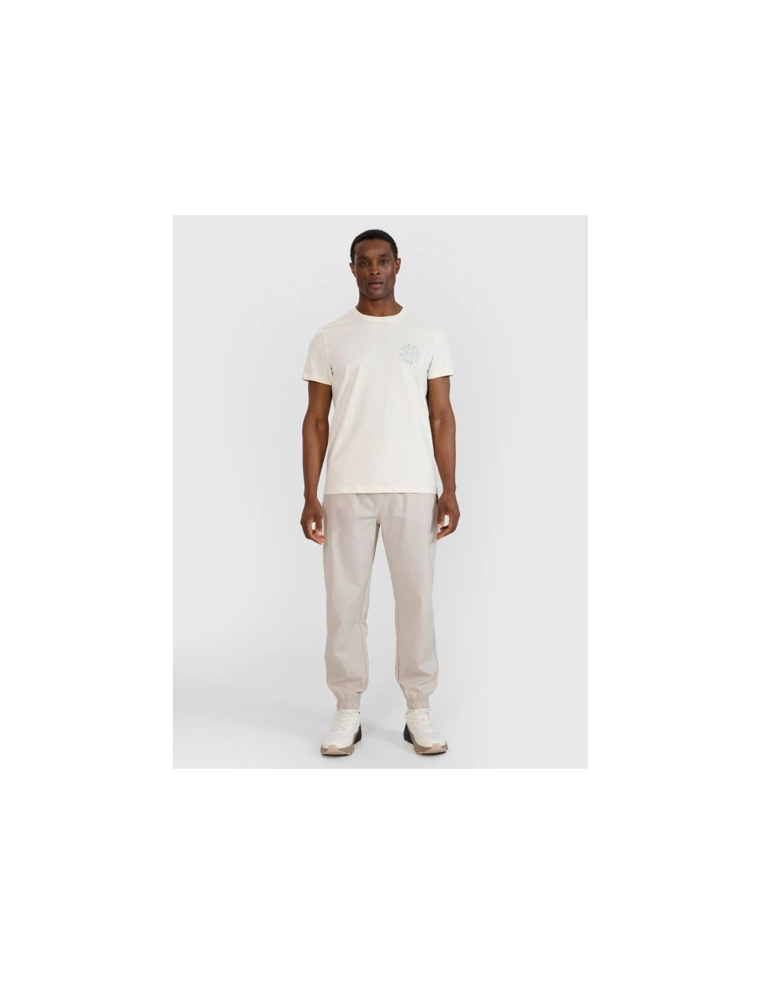 Okrągły dekolt z lekkim ribowaniem dodaje sportowej elegancji, a nadruk z napisem "Everyday Pace" podkreśla codzienny, swobodny charakter koszulki.