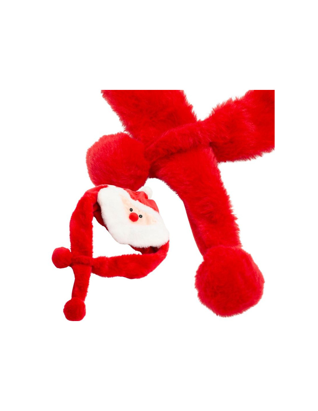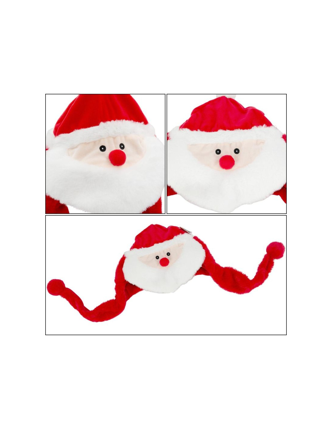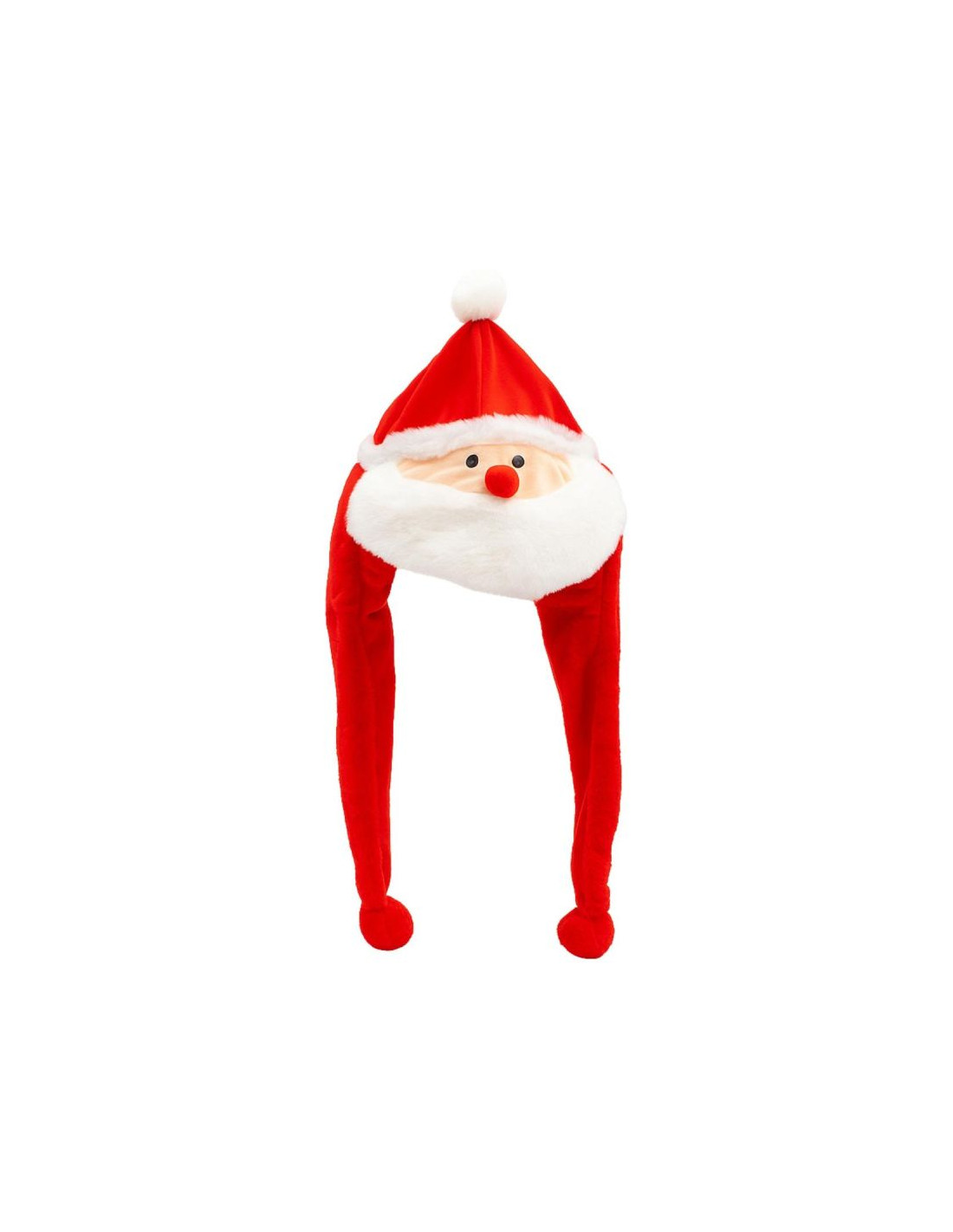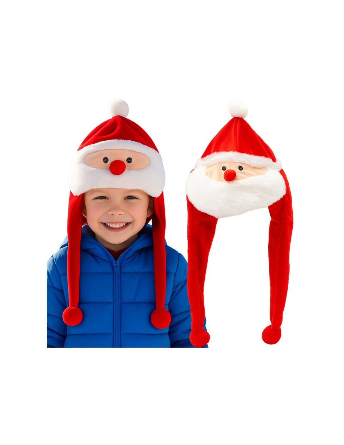 Czerwona czapka z Mikołajem i długimi zwisającymi uszami jest idealny gadżet, by wesoło spędzić czas Świąt Bożego Narodzenia i Mikołajek.