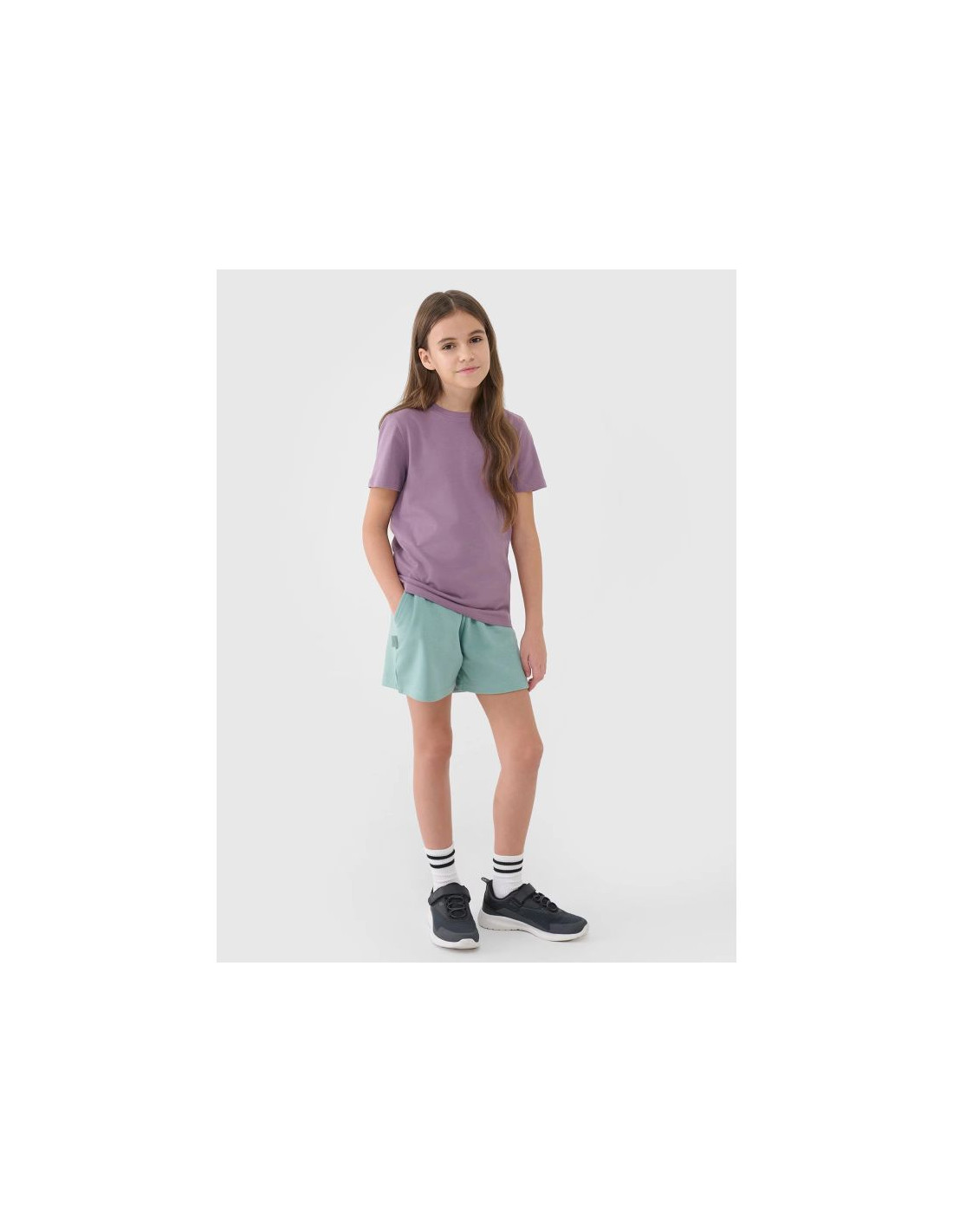 T-shirt regular gładki dziewczęcy to doskonały element garderoby dla aktywnych dziewczynek. Sprawdzi się zarówno w codziennych, jak i sportowych stylizacjach, oferując wygodę i funkcjonalność – szczególnie w cieplejszych dniach.