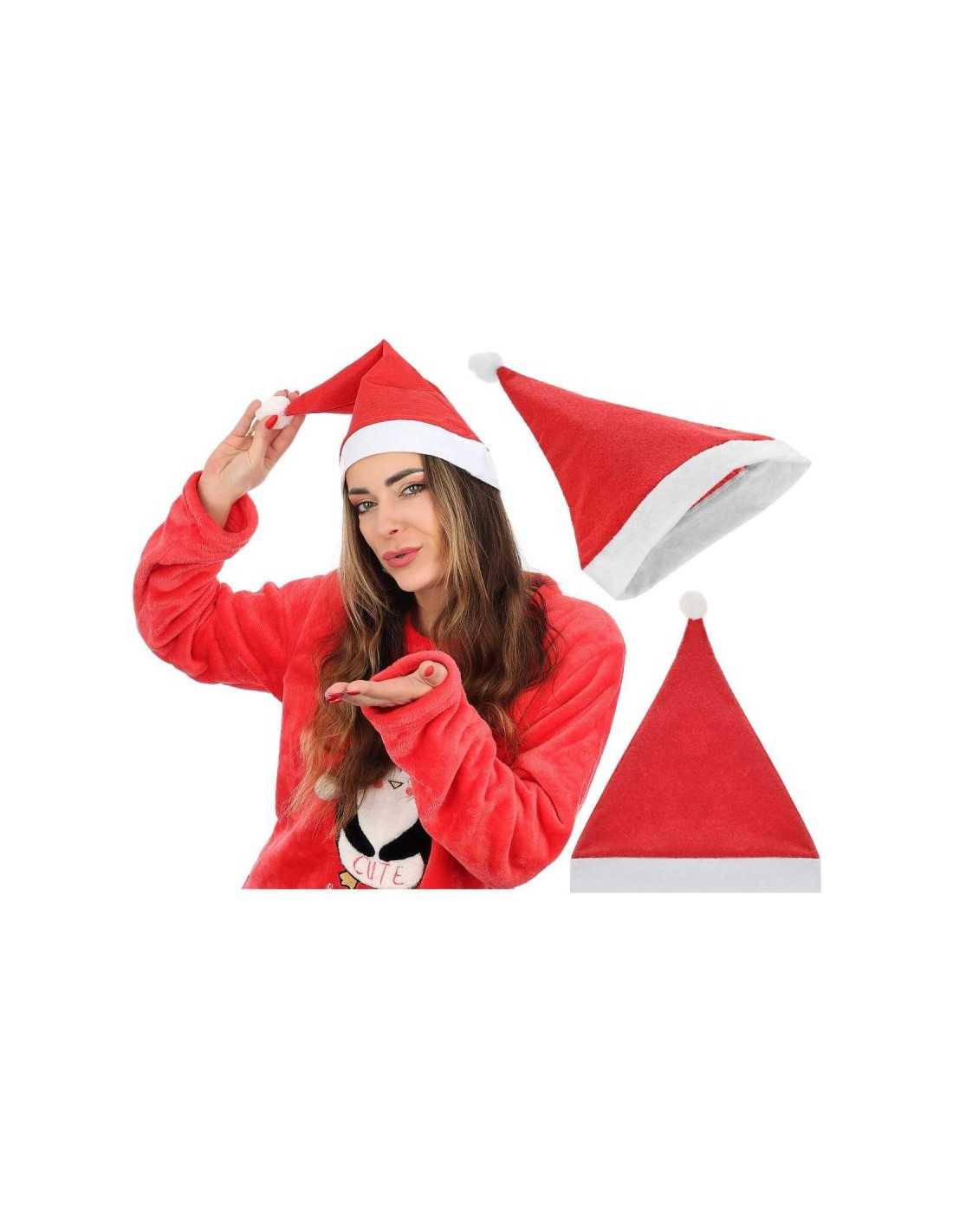 Czapka Mikołaja z pomponem to podstawowy gadżet podczas Świąt Bożego Narodzenia. Czapka jest miękka i miłe w dotyku, zakończona białym, puchatym pomponem, zakończona szerokim białym paskiem. Nosząc taką czapkę bez trudu wprowadzisz z rodziną świąteczny nastrój do Swojego domu.